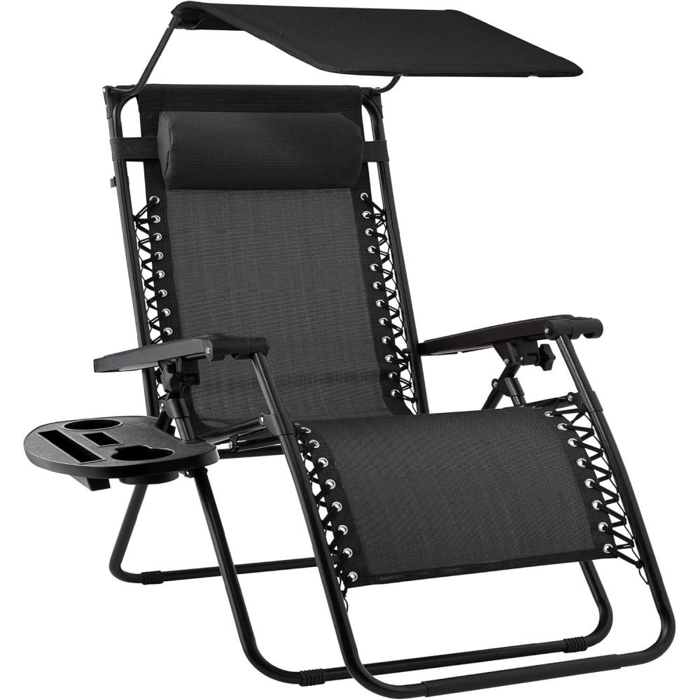 Best Choice Products Folding Zero Gravity Outdoor Recliner Patio Lounge Chair w/Adjustable Canopy Shade, Headrest, Side Accessory Tray, Textilene Mesh – Amethyst Purple(Black)
