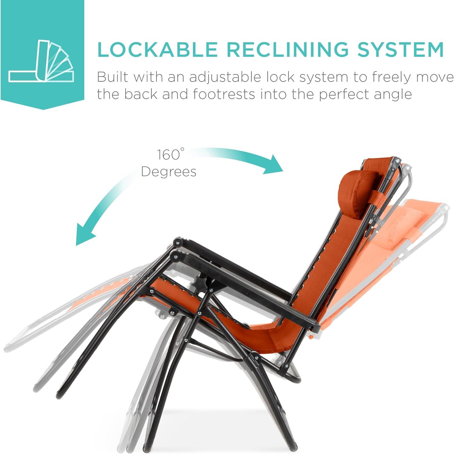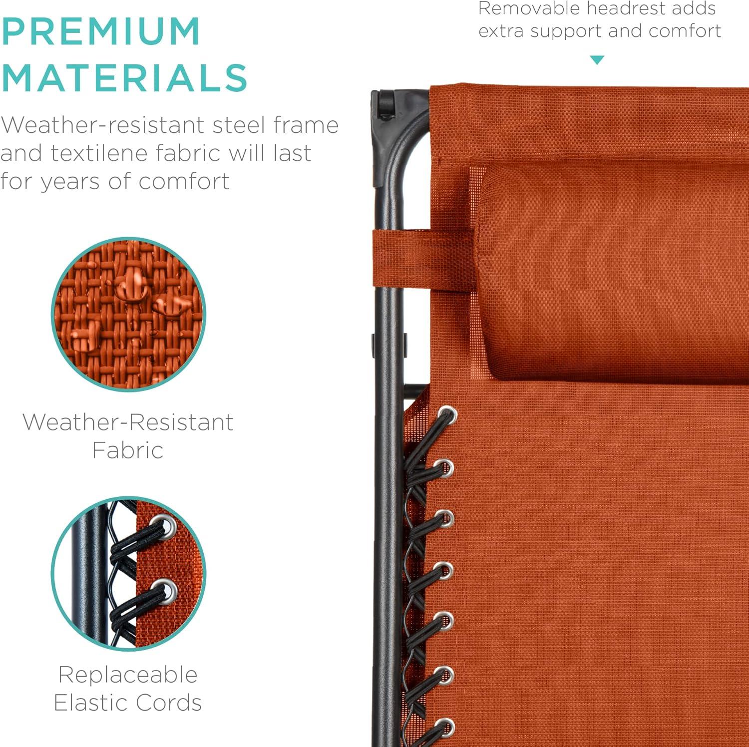 Best Choice Products Folding Zero Gravity Outdoor Recliner Patio Lounge Chair w/Adjustable Canopy Shade, Headrest, Side Accessory Tray, Textilene Mesh – Amethyst Purple(Burnt Orange)