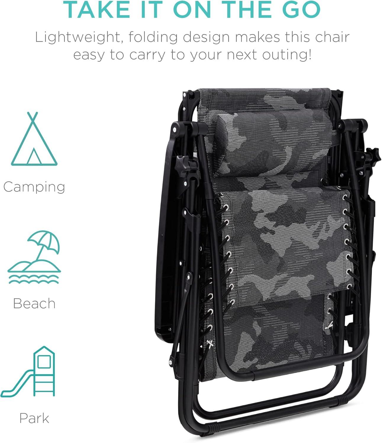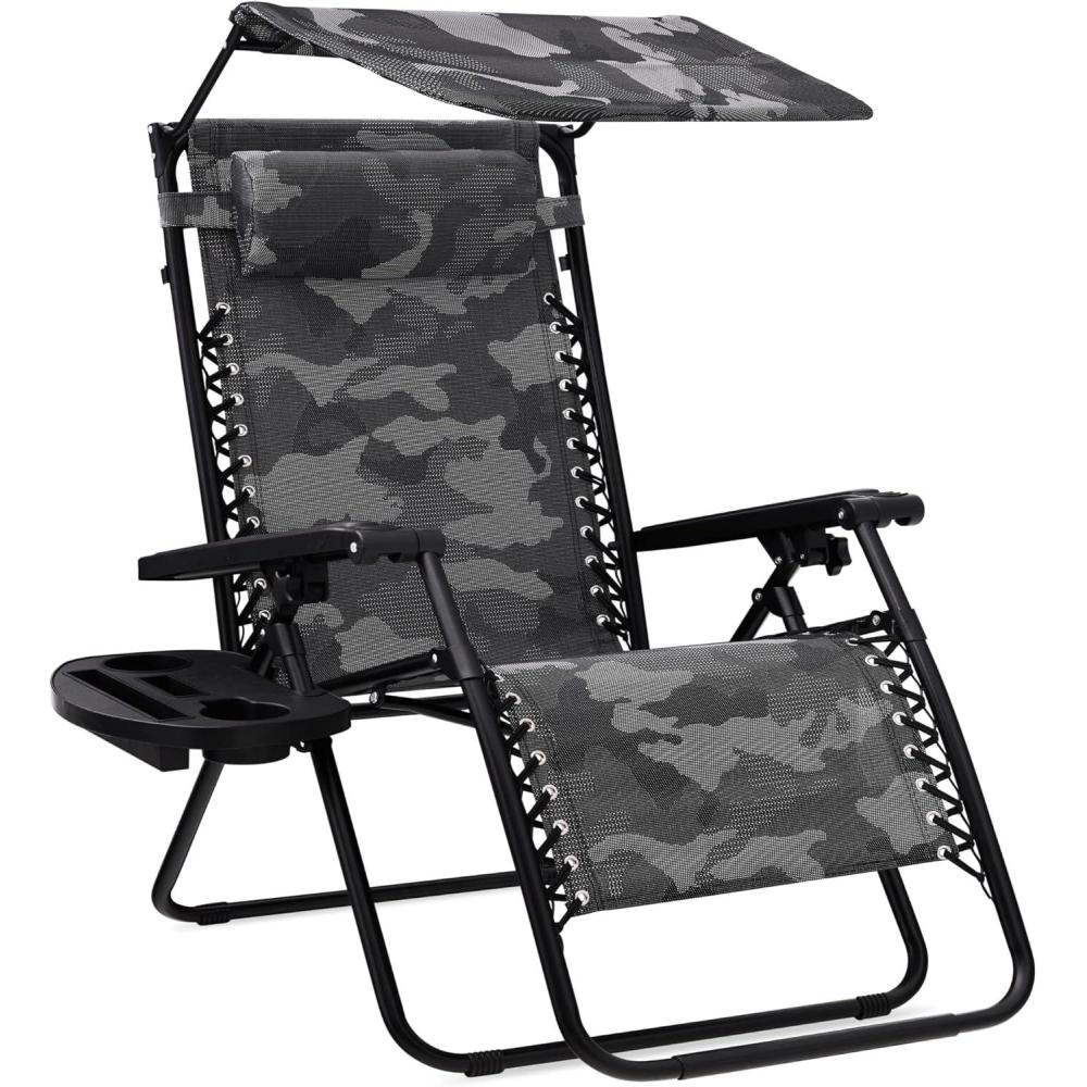 Best Choice Products Folding Zero Gravity Outdoor Recliner Patio Lounge Chair w/Adjustable Canopy Shade, Headrest, Side Accessory Tray, Textilene Mesh – Amethyst Purple(Camouflage)