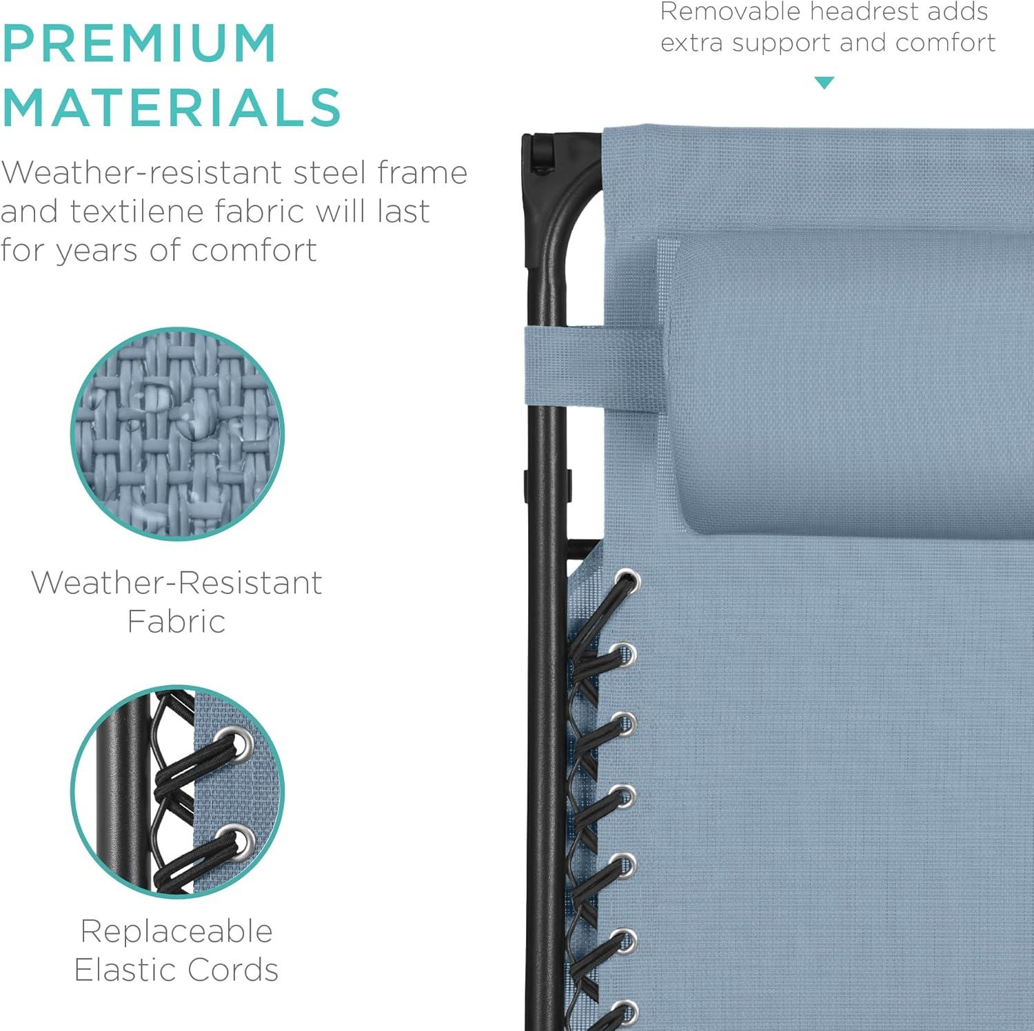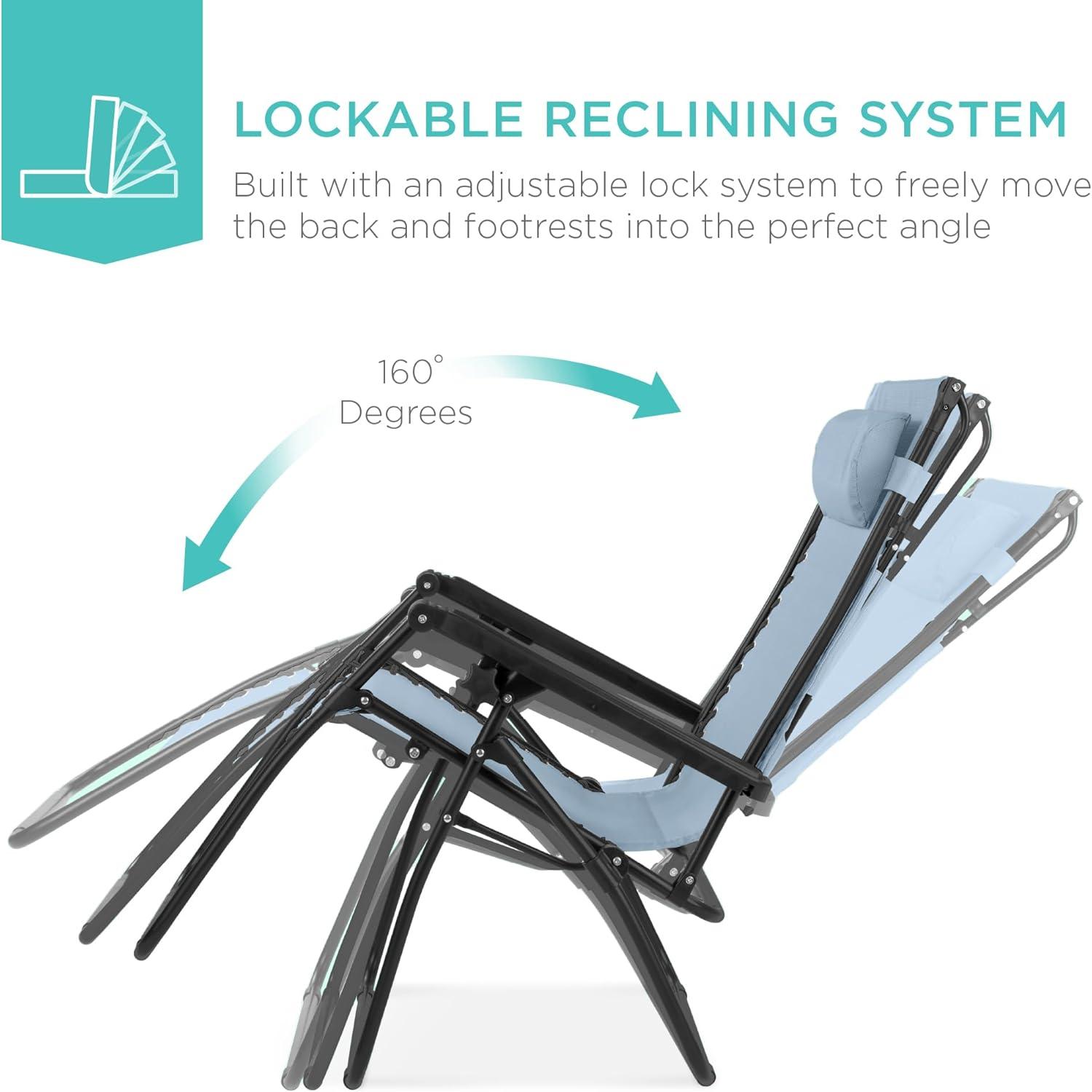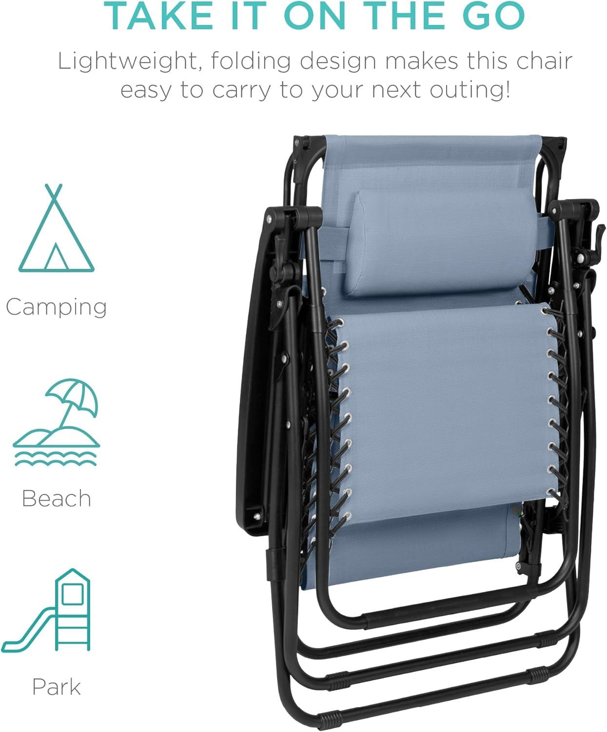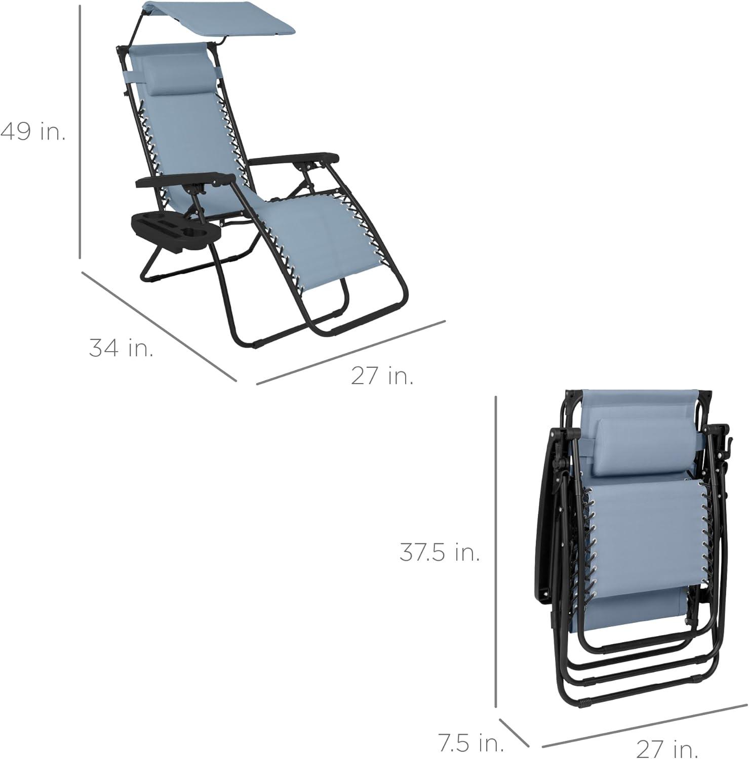 Best Choice Products Folding Zero Gravity Outdoor Recliner Patio Lounge Chair w/Adjustable Canopy Shade, Headrest, Side Accessory Tray, Textilene Mesh – Amethyst Purple(Dusty Blue)