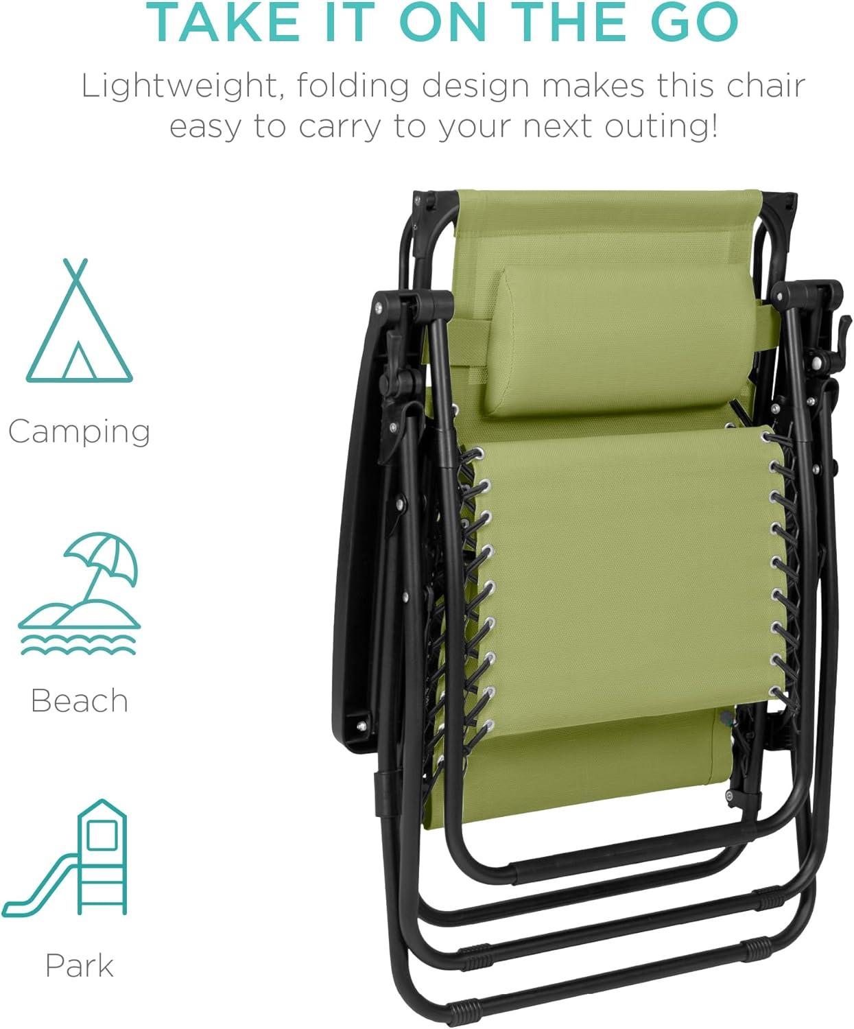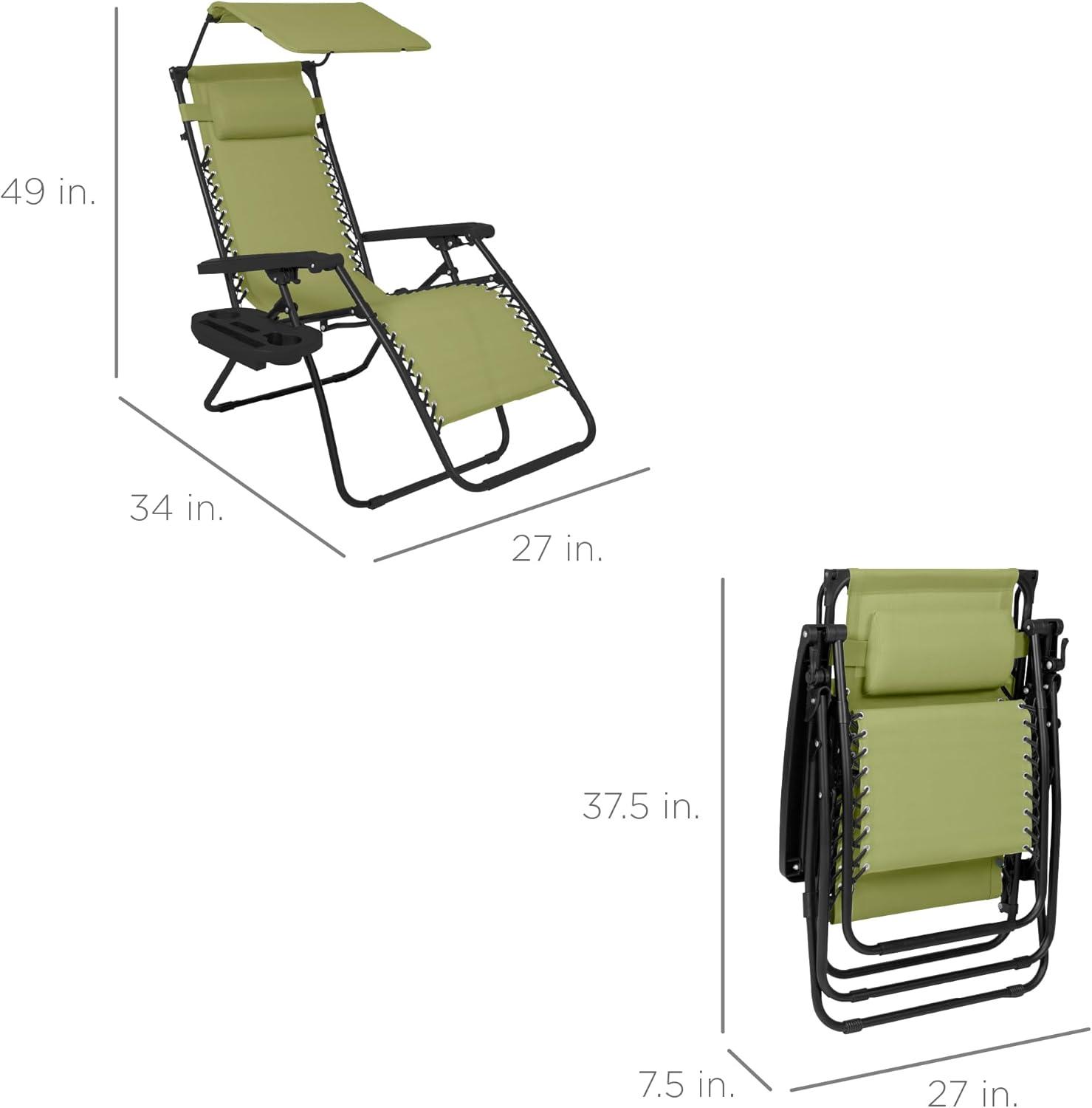 Best Choice Products Folding Zero Gravity Outdoor Recliner Patio Lounge Chair w/Adjustable Canopy Shade, Headrest, Side Accessory Tray, Textilene Mesh – Amethyst Purple(Forest Green)