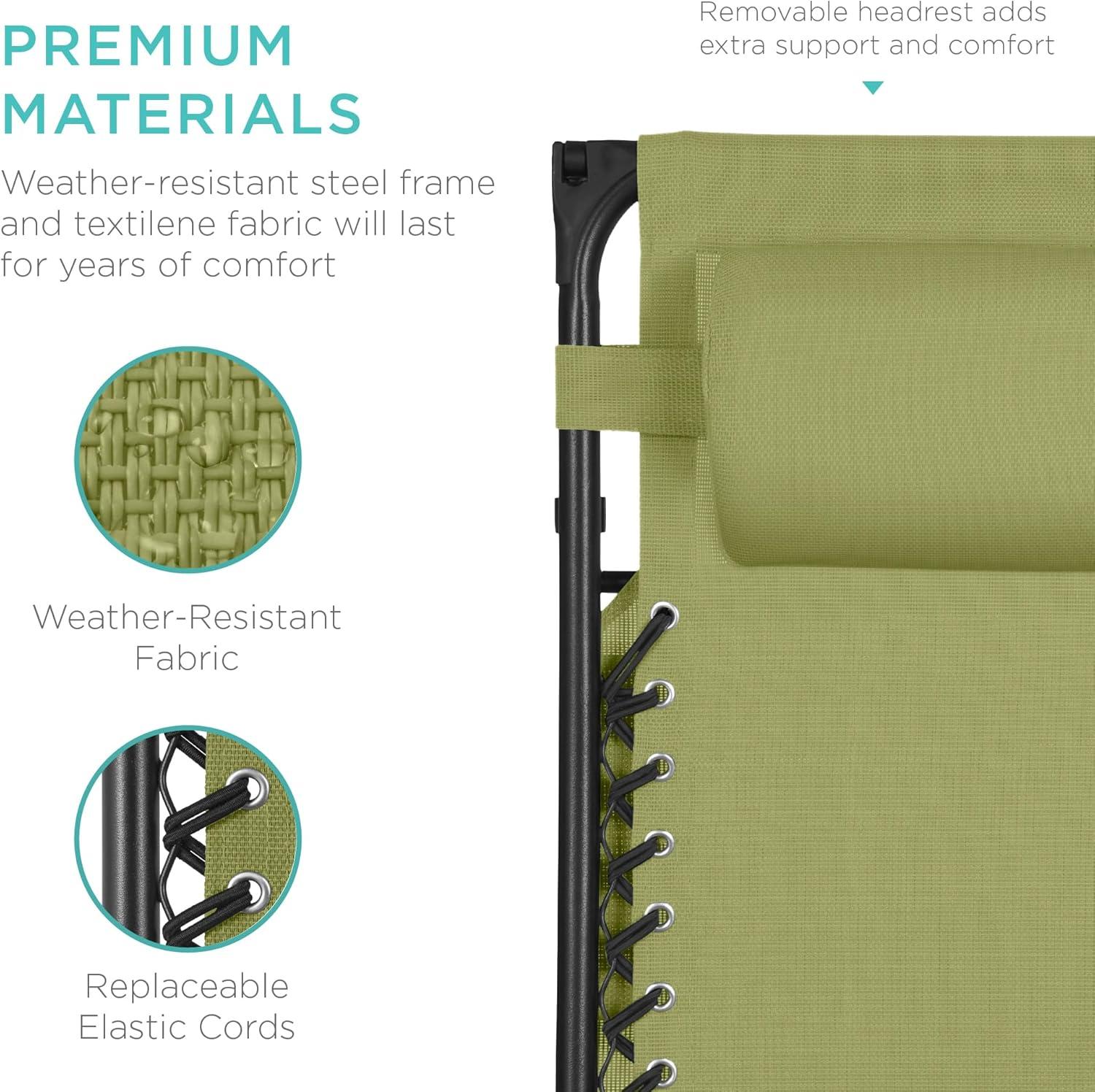 Best Choice Products Folding Zero Gravity Outdoor Recliner Patio Lounge Chair w/Adjustable Canopy Shade, Headrest, Side Accessory Tray, Textilene Mesh – Amethyst Purple(Dusty Green)