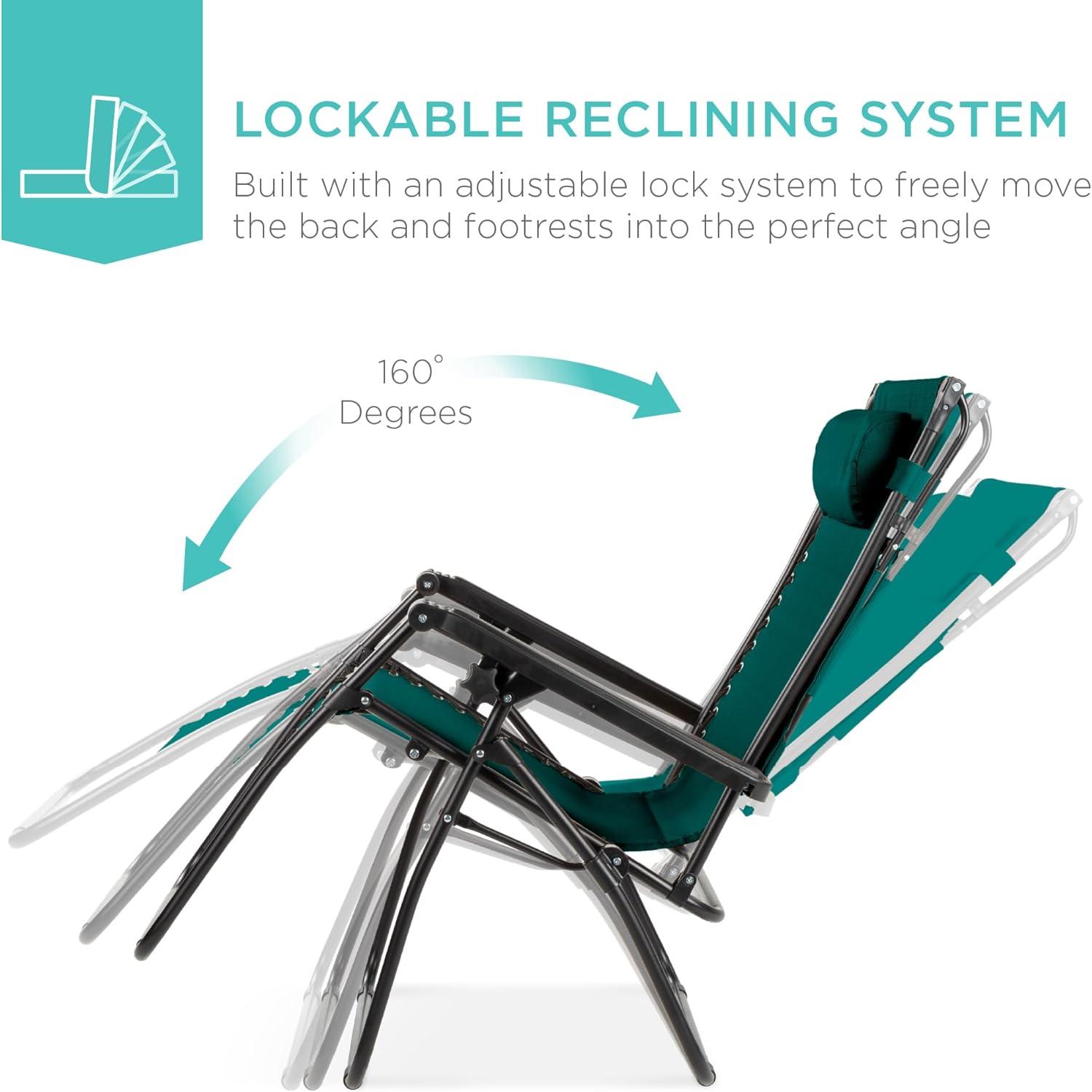 Best Choice Products Folding Zero Gravity Outdoor Recliner Patio Lounge Chair w/Adjustable Canopy Shade, Headrest, Side Accessory Tray, Textilene Mesh – Amethyst Purple(Forest Green)