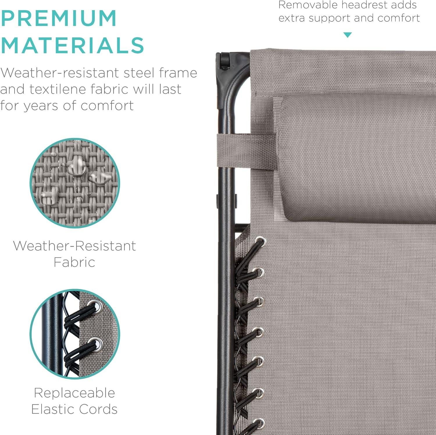 Best Choice Products Folding Zero Gravity Outdoor Recliner Patio Lounge Chair w/Adjustable Canopy Shade, Headrest, Side Accessory Tray, Textilene Mesh – Amethyst Purple(Ice Gray)