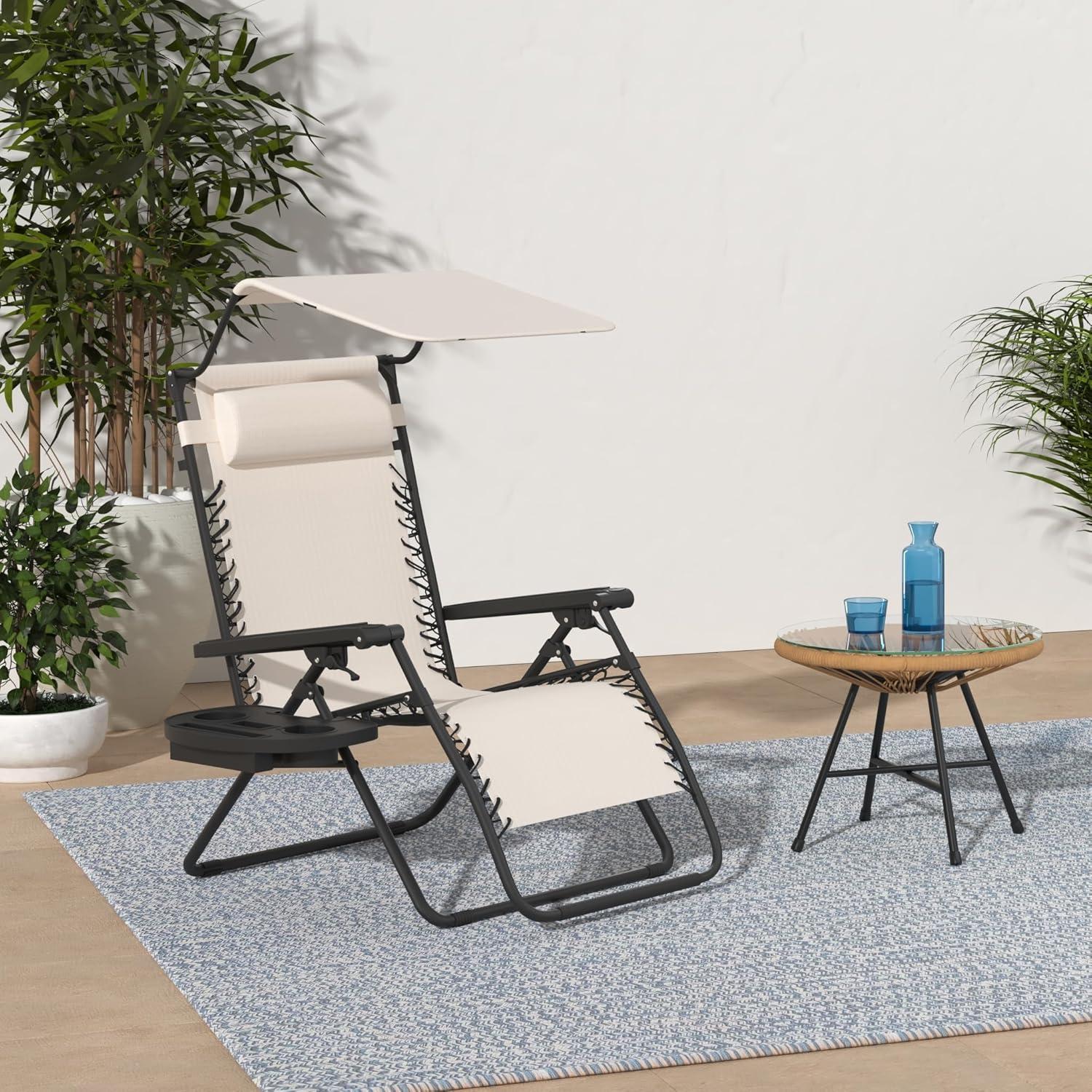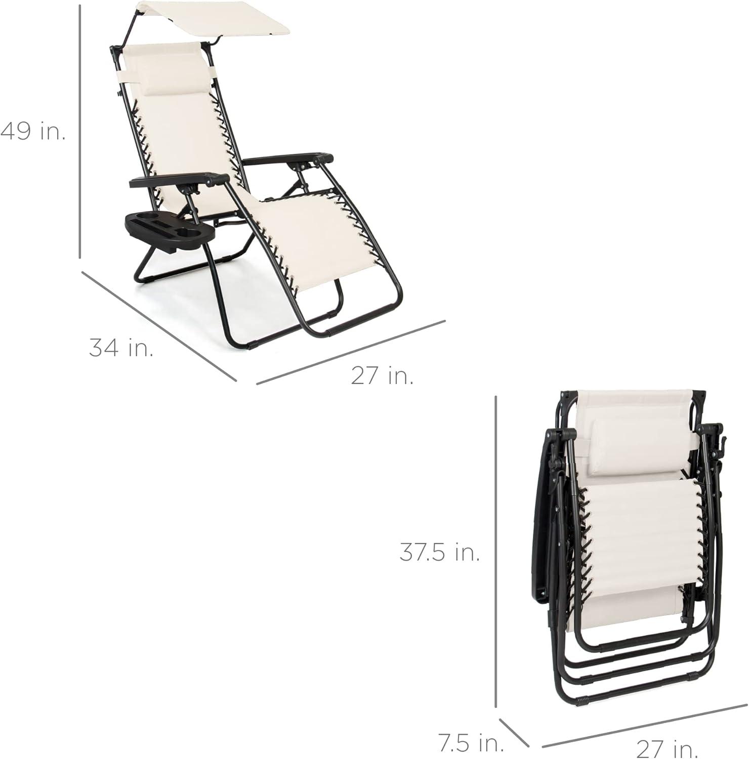 Best Choice Products Folding Zero Gravity Outdoor Recliner Patio Lounge Chair w/Adjustable Canopy Shade, Headrest, Side Accessory Tray, Textilene Mesh – Amethyst Purple(Ivory)