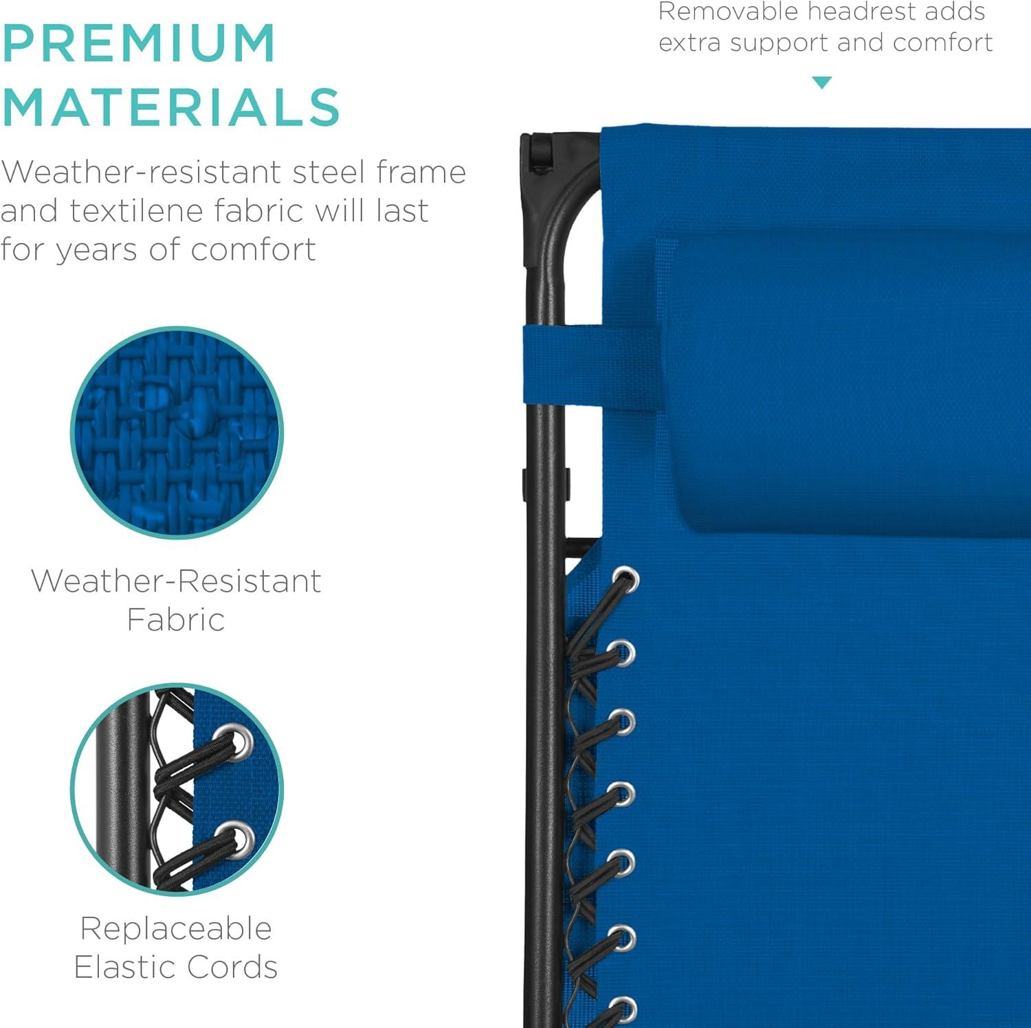 Best Choice Products Folding Zero Gravity Outdoor Recliner Patio Lounge Chair w/Adjustable Canopy Shade, Headrest, Side Accessory Tray, Textilene Mesh - Amethyst Purple(Marine Blue)