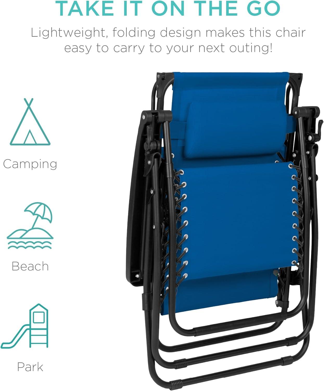 Best Choice Products Folding Zero Gravity Outdoor Recliner Patio Lounge Chair w/Adjustable Canopy Shade, Headrest, Side Accessory Tray, Textilene Mesh – Amethyst Purple(Marine Blue)