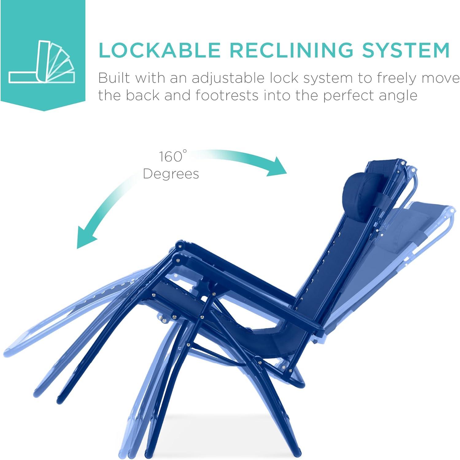 Best Choice Products Folding Zero Gravity Outdoor Recliner Patio Lounge Chair w/Adjustable Canopy Shade, Headrest, Side Accessory Tray, Textilene Mesh – Amethyst Purple(Marine Blue)