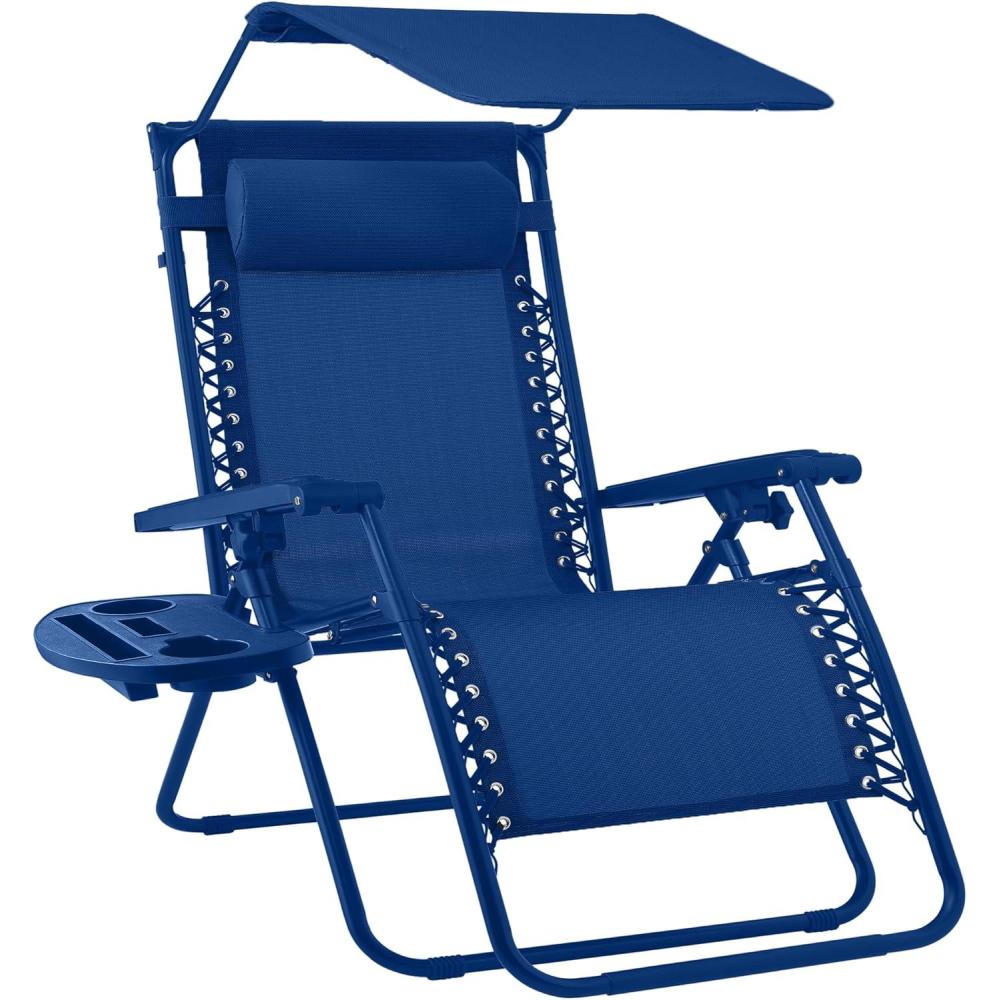 imageBest Choice Products Folding Zero Gravity Outdoor Recliner Patio Lounge Chair wAdjustable Canopy Shade Headrest Side Accessory Tray Textilene Mesh  Amethyst PurpleMarine Blue