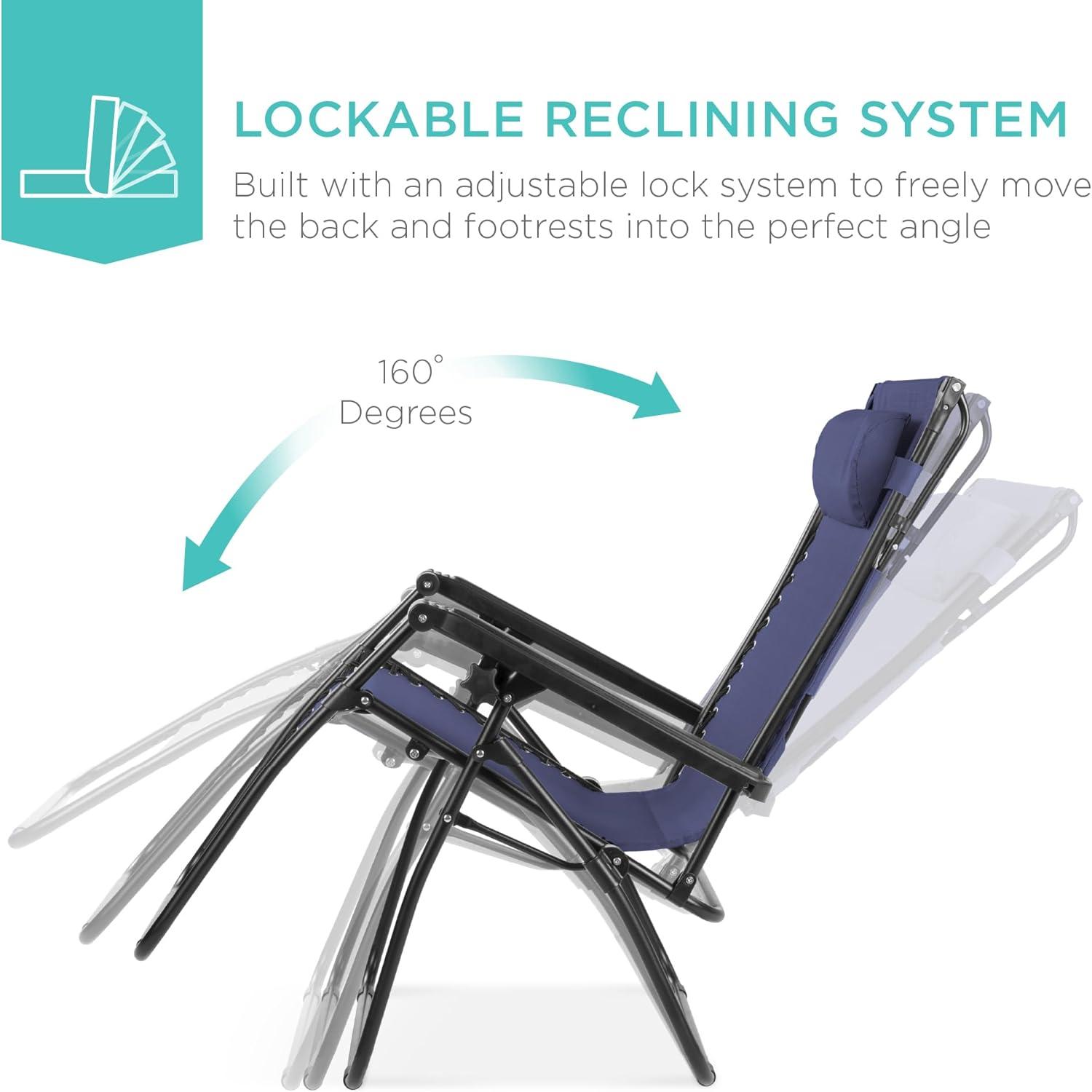 Best Choice Products Folding Zero Gravity Outdoor Recliner Patio Lounge Chair w/Adjustable Canopy Shade, Headrest, Side Accessory Tray, Textilene Mesh – Amethyst Purple(Navy Blue)