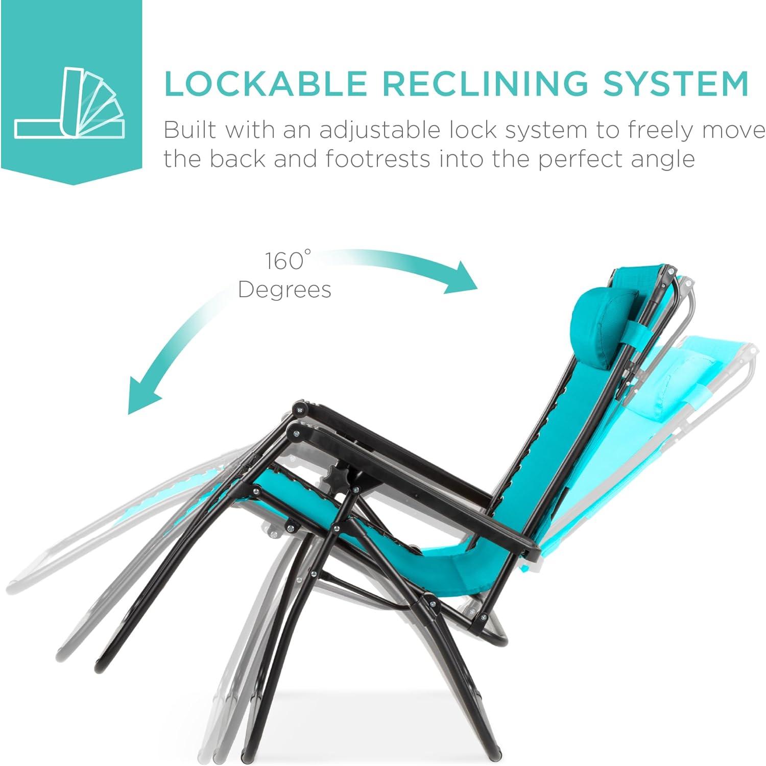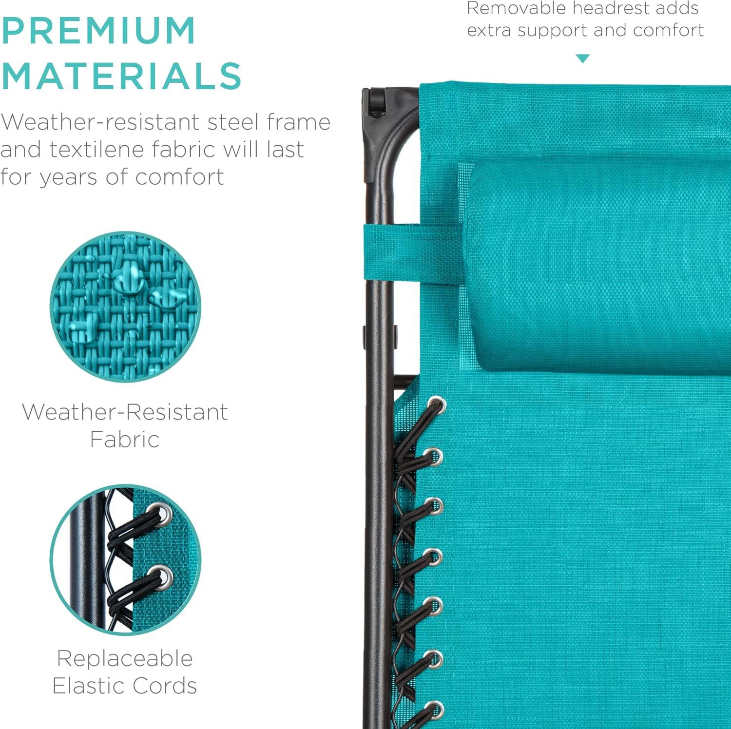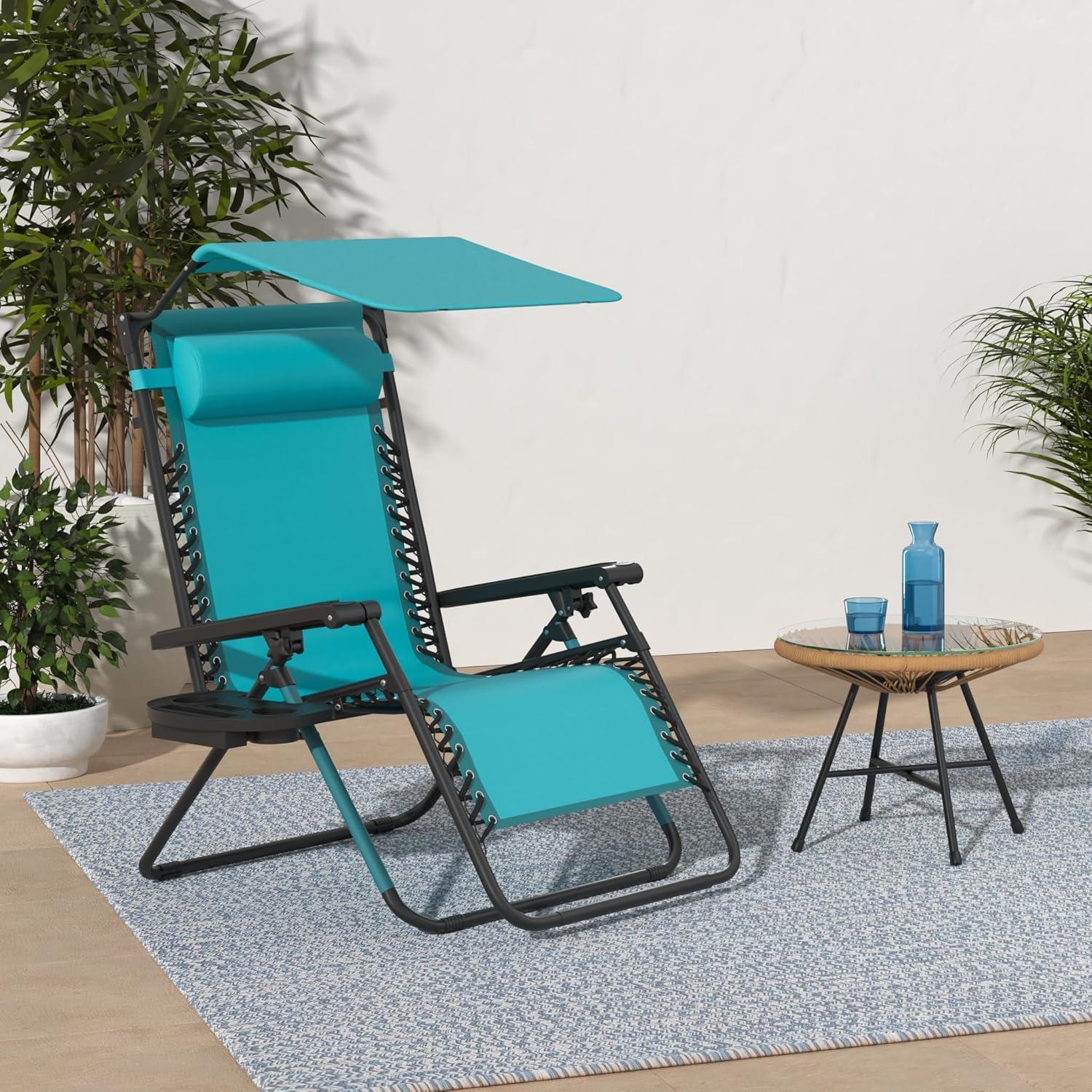 Best Choice Products Folding Zero Gravity Outdoor Recliner Patio Lounge Chair w/Adjustable Canopy Shade, Headrest, Side Accessory Tray, Textilene Mesh – Amethyst Purple(Peacock Blue)