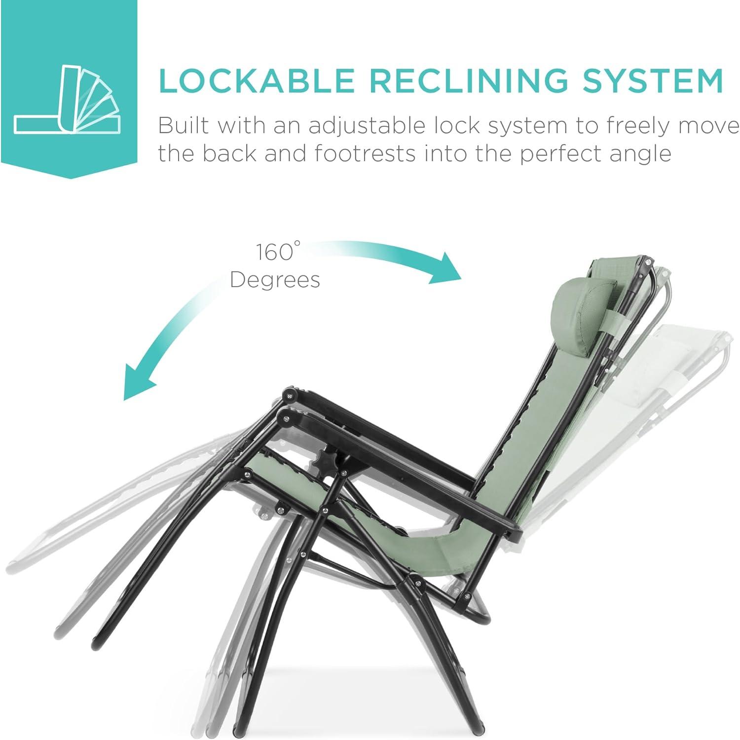 Best Choice Products Folding Zero Gravity Outdoor Recliner Patio Lounge Chair w/Adjustable Canopy Shade, Headrest, Side Accessory Tray, Textilene Mesh – Amethyst Purple(Sage Green)