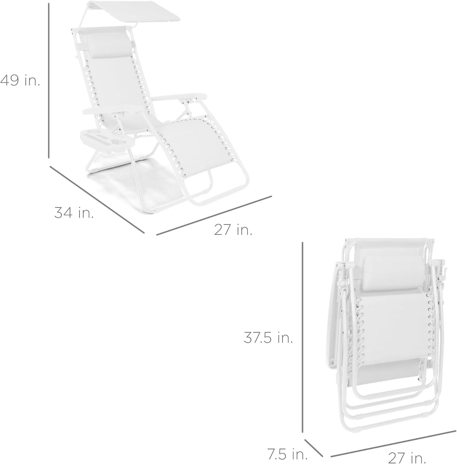 Best Choice Products Folding Zero Gravity Outdoor Recliner Patio Lounge Chair w/Adjustable Canopy Shade, Headrest, Side Accessory Tray, Textilene Mesh – Amethyst Purple(Snow)