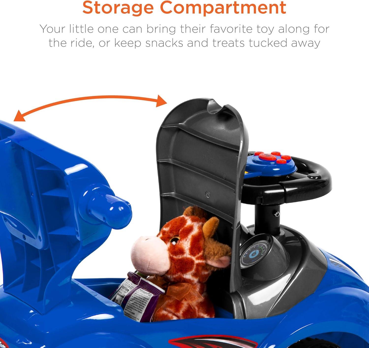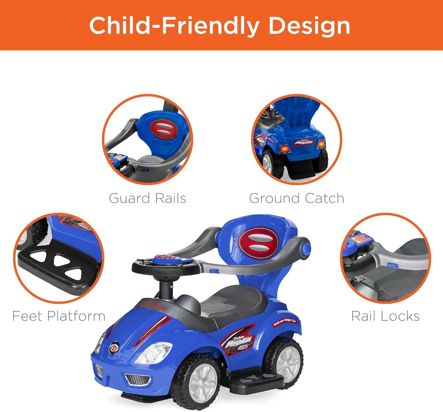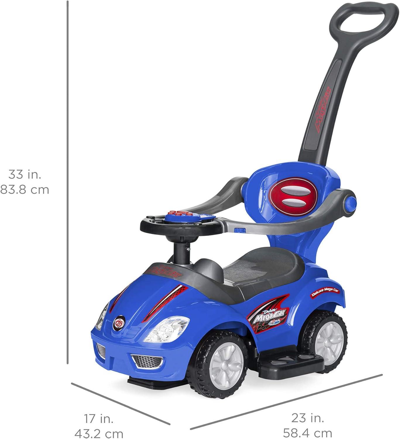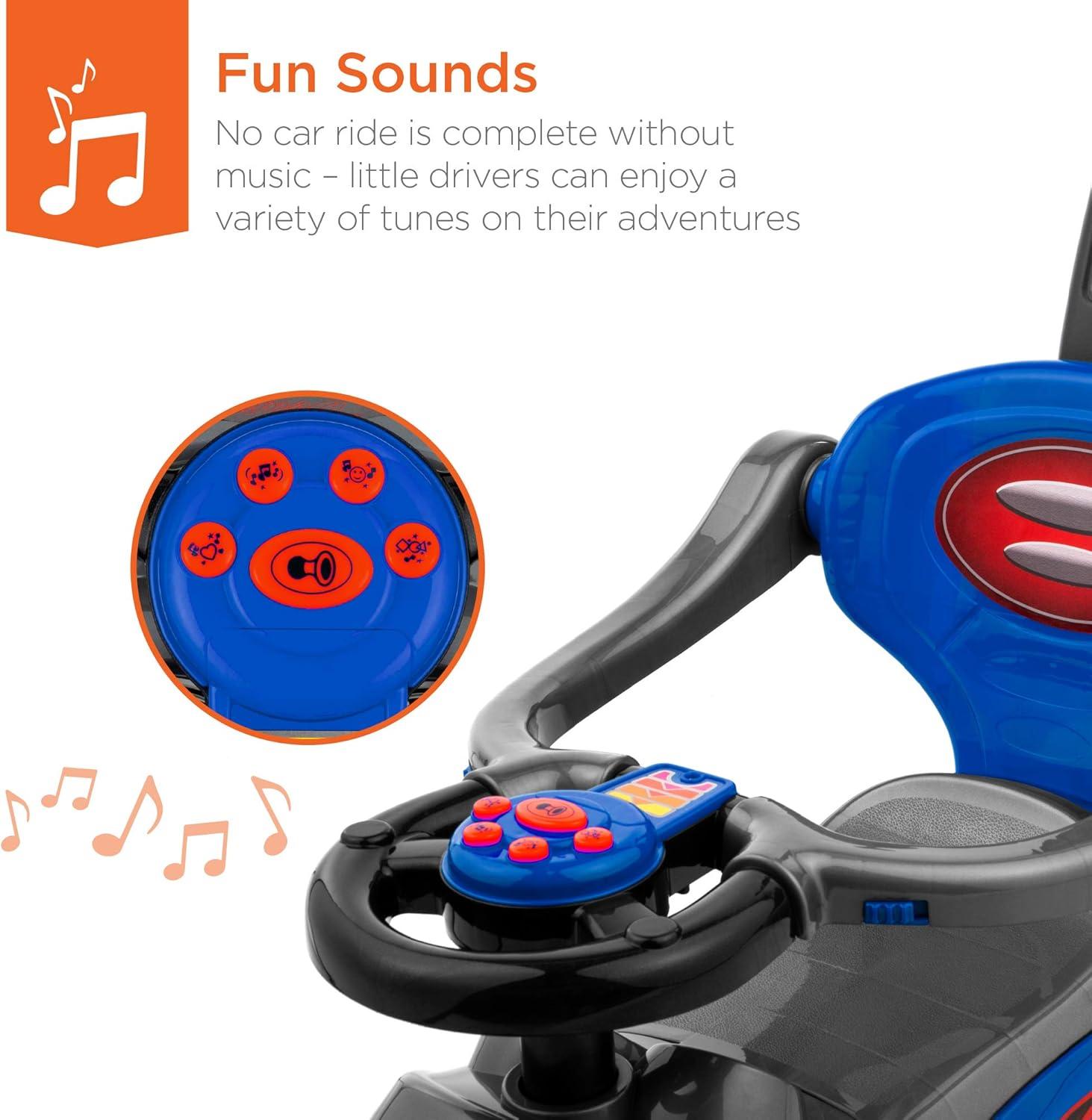 Best Choice Products Kids 3-in-1 Push and Pedal Car Toddler Ride On w/Handle, Horn, Music – Blue(Blue)