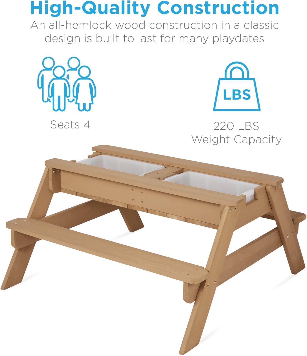 HIGH-QUALITY CONSTRUCTION: Crafted with 100% real hemlock wood to last through years of building, playing, or munching on tasty outdoor meals while comfortably seating 4 children