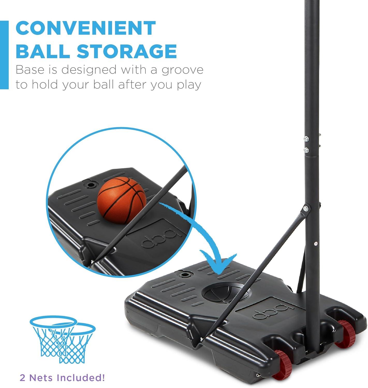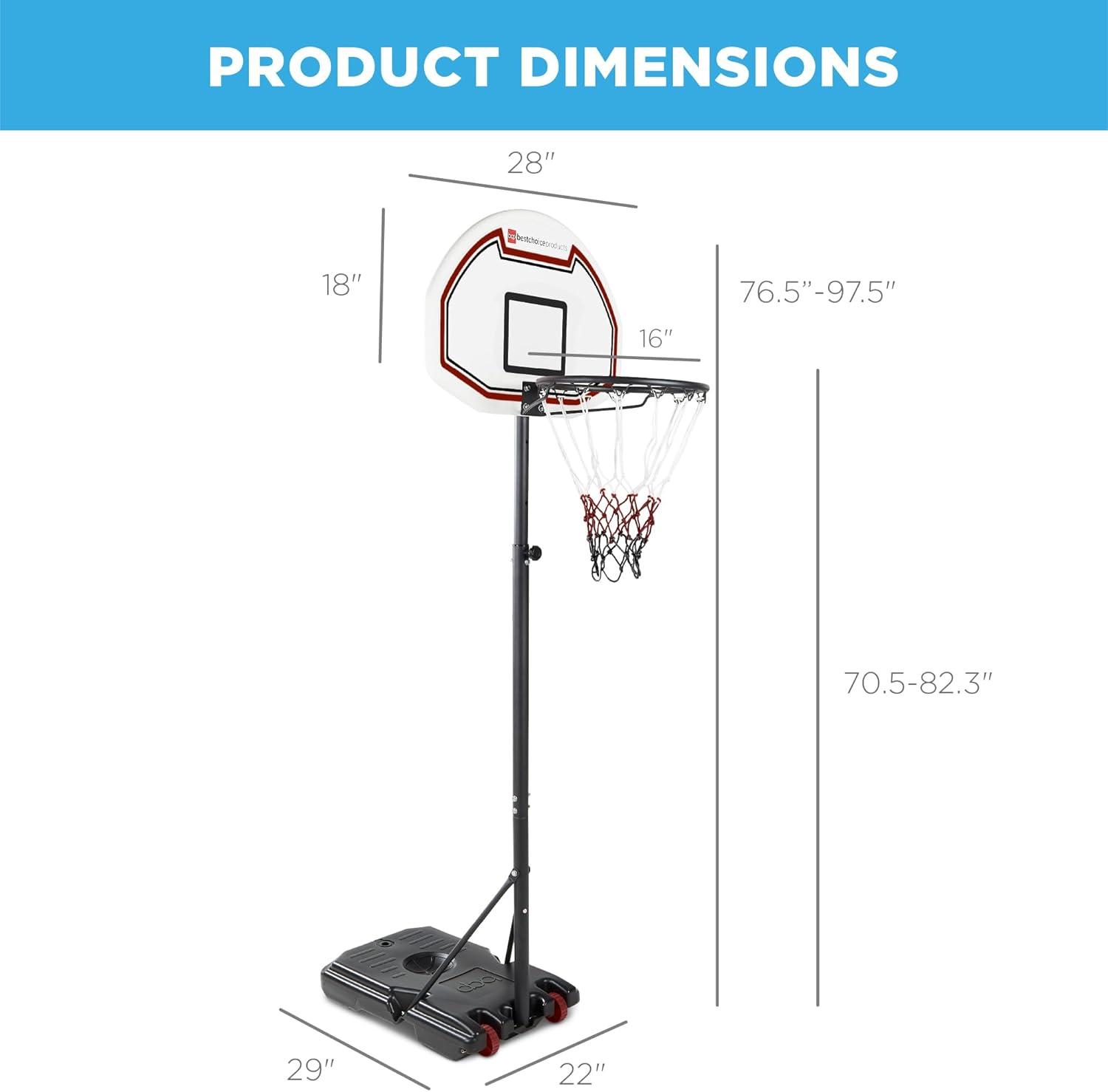 Best Choice Products Kids Height-Adjustable Basketball Hoop, Portable Backboard Set w/ 2 Wheels, Fillable Base, 70.5in to 82.3in Tall(Dark Red/Black)