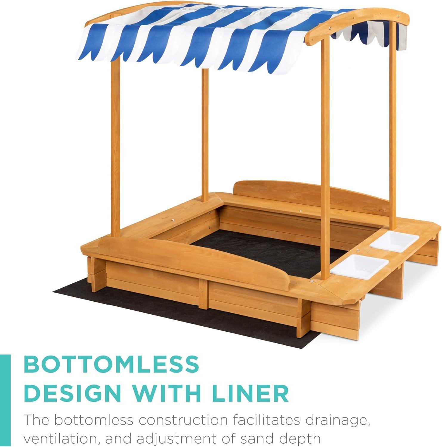 Best Choice Products Kids Wooden Cabana Sandbox Play Station for Children, Outdoor, Backyard w/ 2 Bench Seats, UV-Resistant Canopy Shade, Fabric Sandpit Cover, 2 Side Buckets – Natural