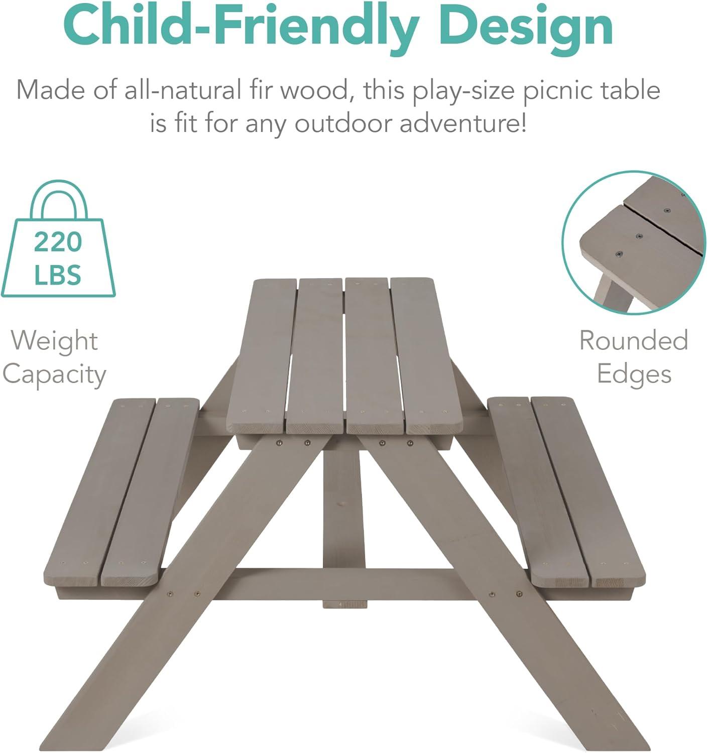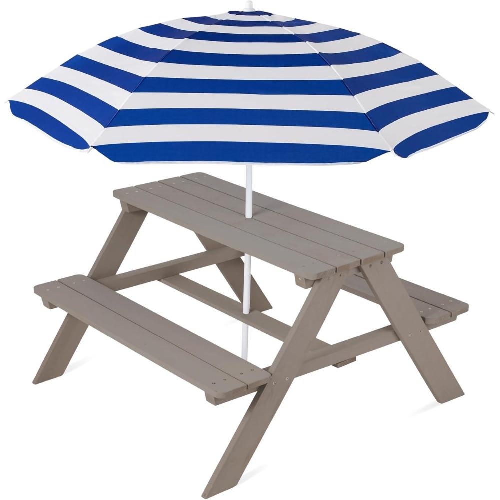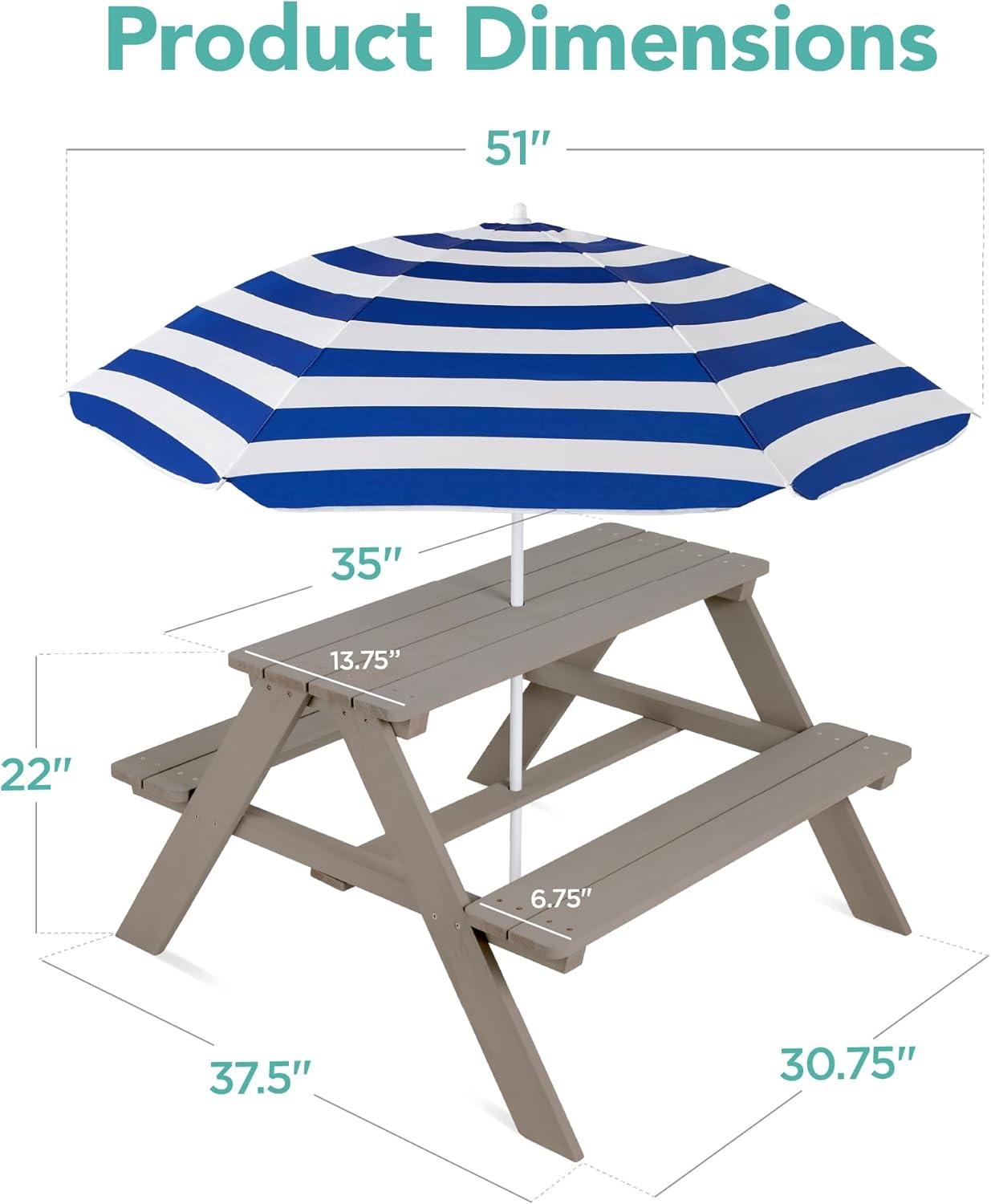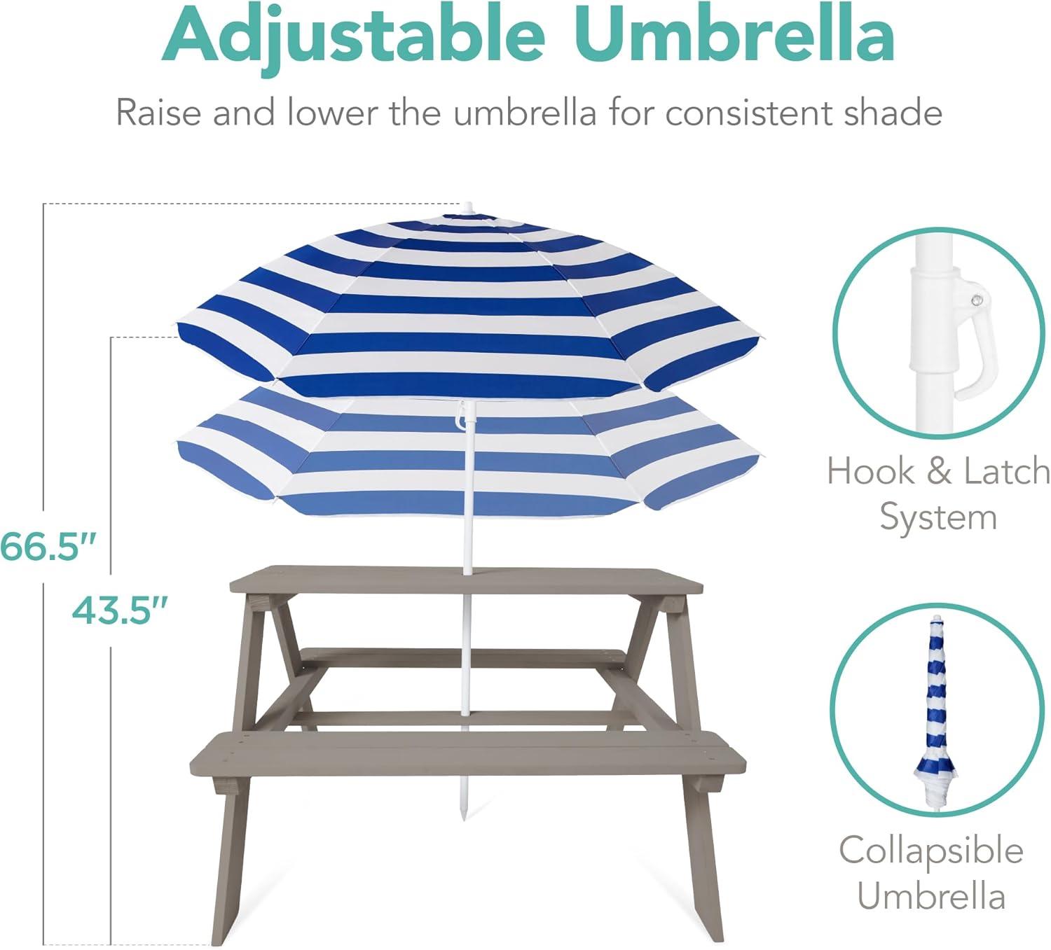 Best Choice Products Kids Wooden Picnic Table, Outdoor Activity & Dining Table w/Adjustable Collapsible Umbrella, Built-in Seats - Golden Brown/Navy(Gray/Navy)