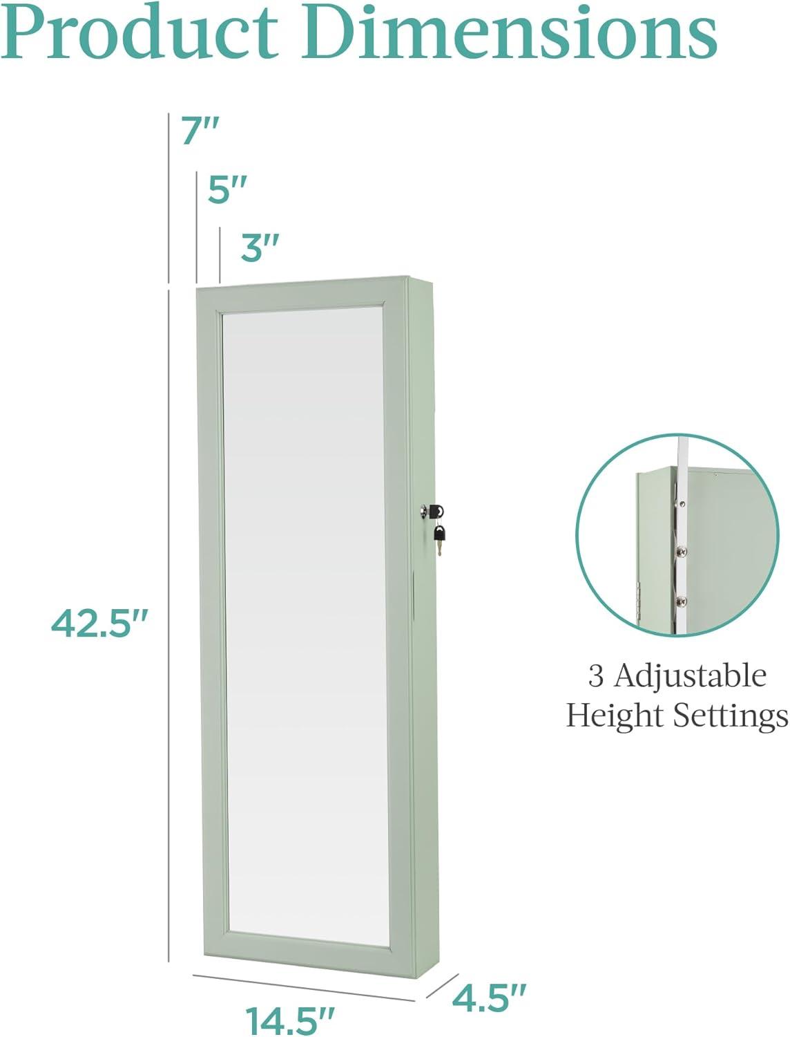 VERSATILE USE: Use the adjustable hooks for easy setup or the wall brackets for more permanent placement; wherever you need it most, you can take advantage of the full-length and interior mirrors to fine tune everything from your make-up to your clothes and accesssories; OVERALL DIMENSIONS: 14.5″(L) x 4.5″(W) x 42.5″(H); WEIGHT CAPACITY: 25 lbs.