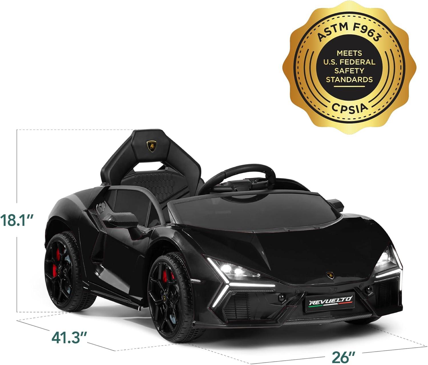 OFFICIALLY LICENSED LAMBORGHINI REVUELTO: Turn your child's playtime into a thrilling adventure, courtesy of this licensed, Lamborghini Revuelto ride on sports car for kids with interactive features, including hydraulic lift doors!