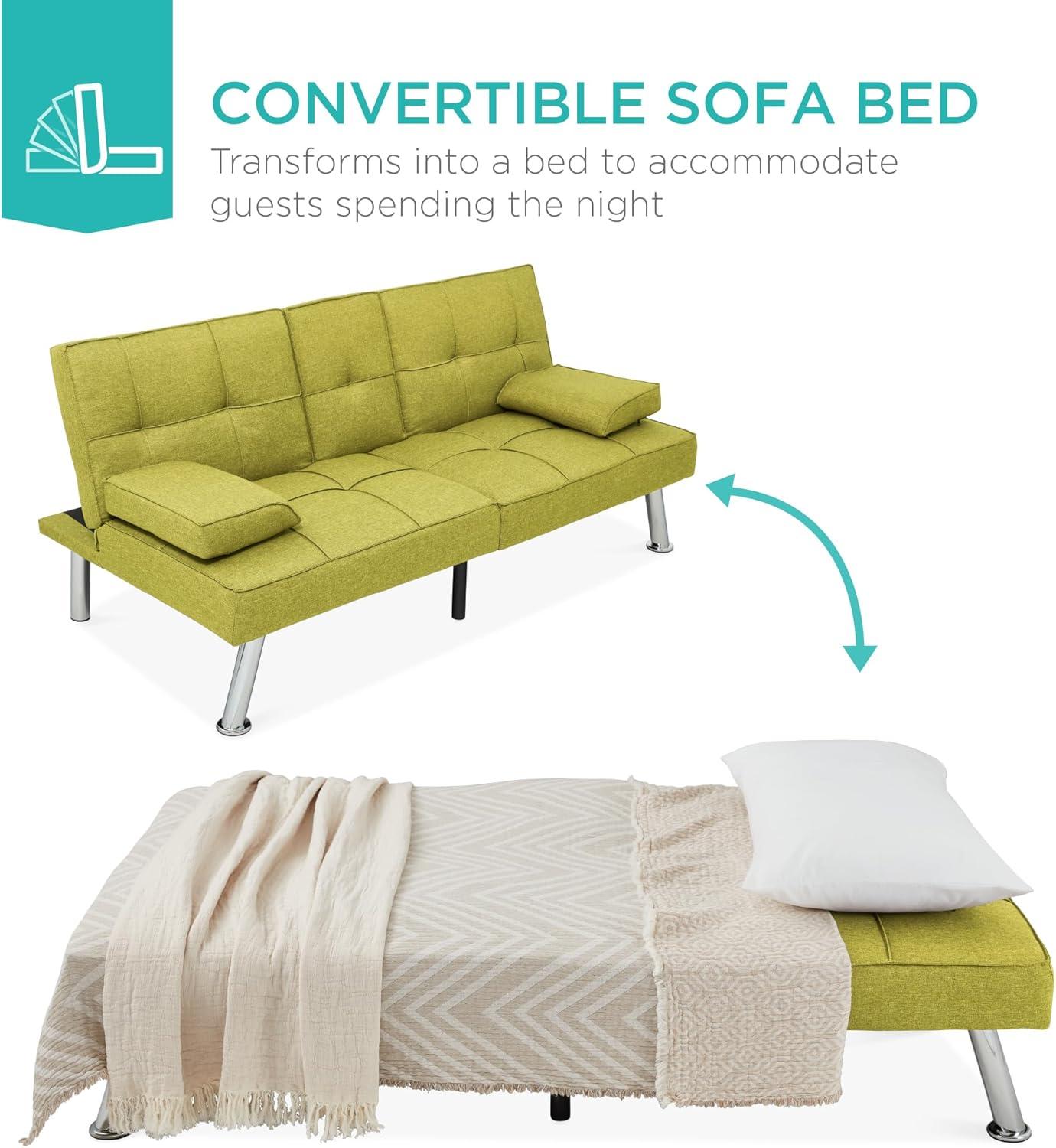 Best Choice Products Linen Modern Folding Futon, Reclining Sofa Bed for Apartment, Dorm w/Removable Armrests, 2 Cupholders - Beige(Chartreuse)