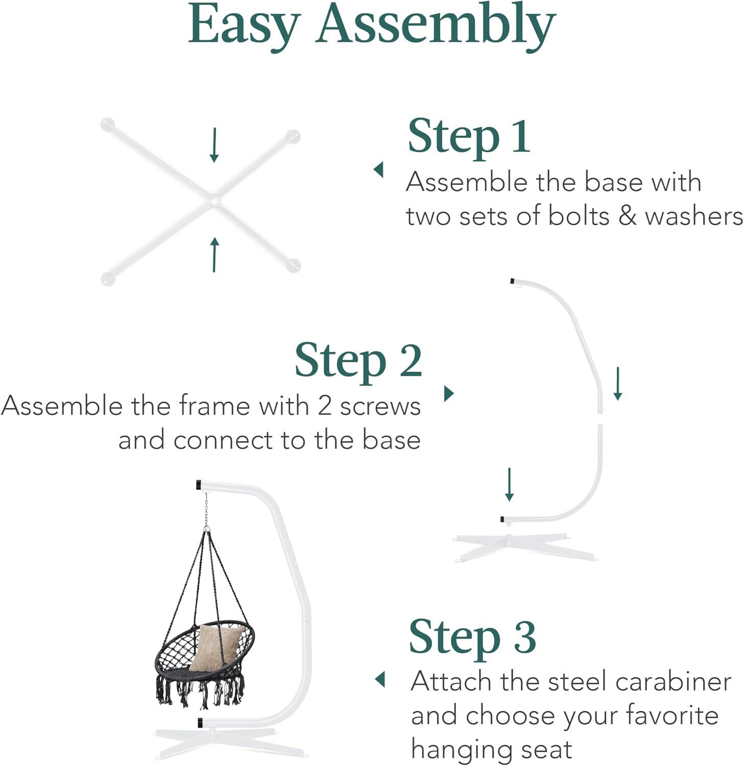 Best Choice Products Metal Hanging Hammock C-Stand for Chair/Weather-Resistant Finish, Offset Base – Stand Only – Black(White)