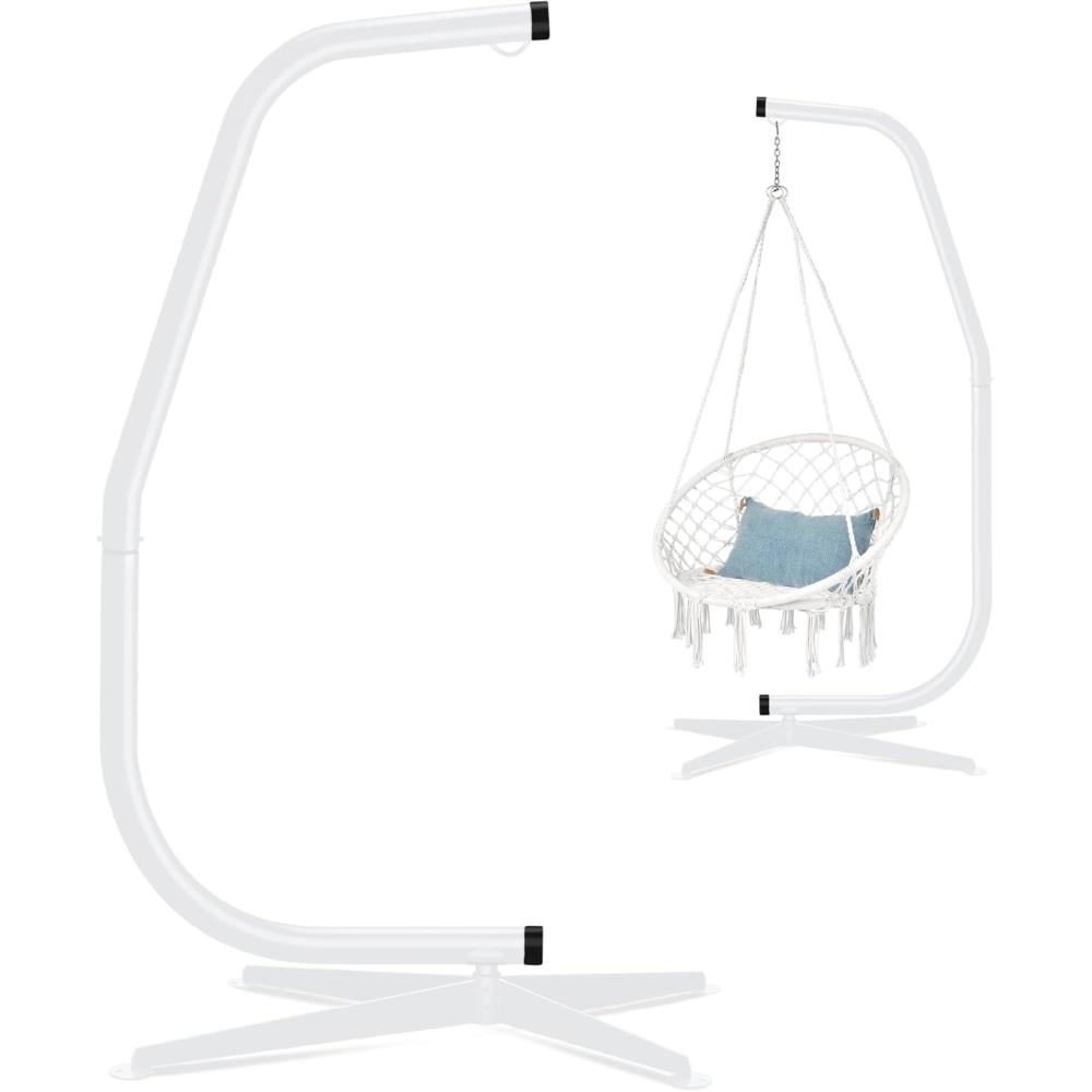 Best Choice Products Metal Hanging Hammock C-Stand for Chair/Weather-Resistant Finish, Offset Base - Stand Only - Black(White)