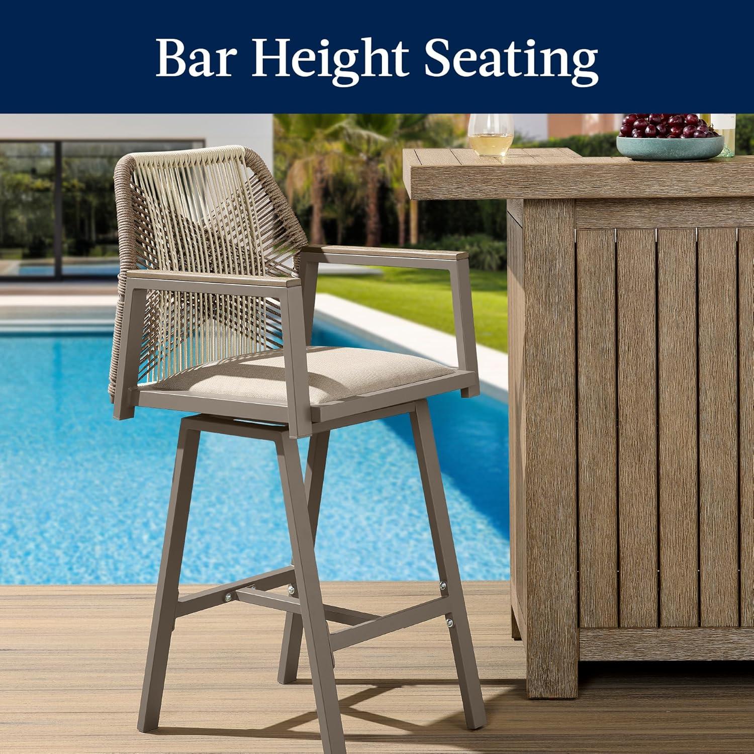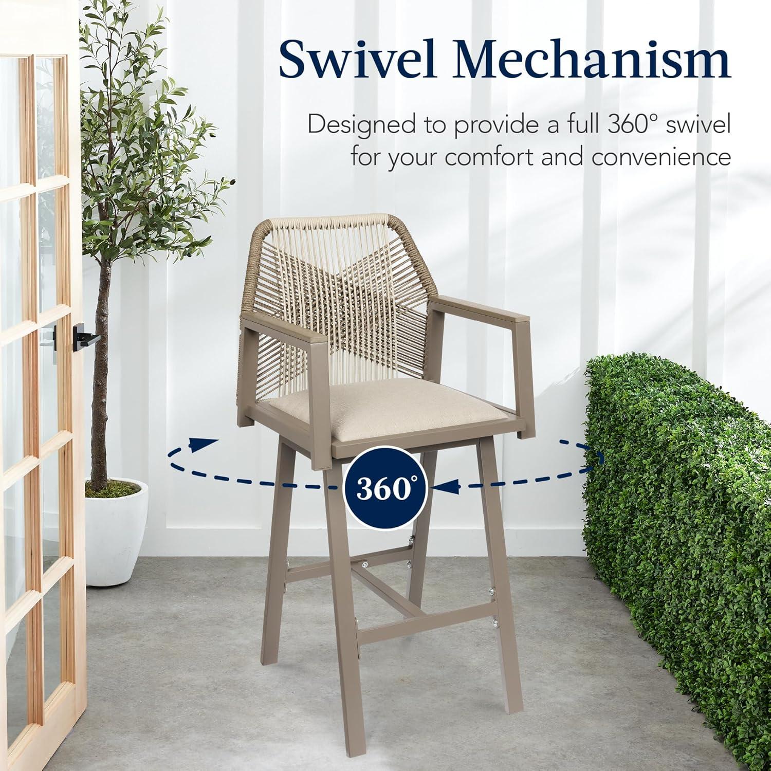360° SWIVEL WITH ARMRESTS: A 360° swivel seat allows for smooth turning in any direction, while the integrated wooden armrests provide a comfortable, cool surface, which reduces heat buildup under the sun
