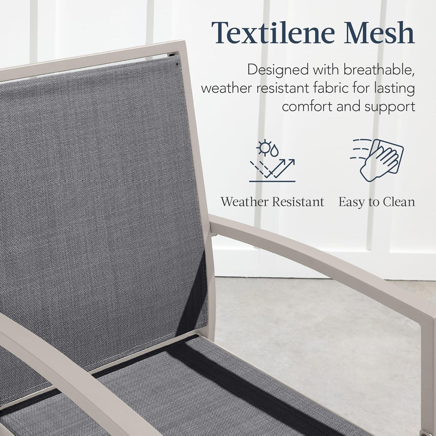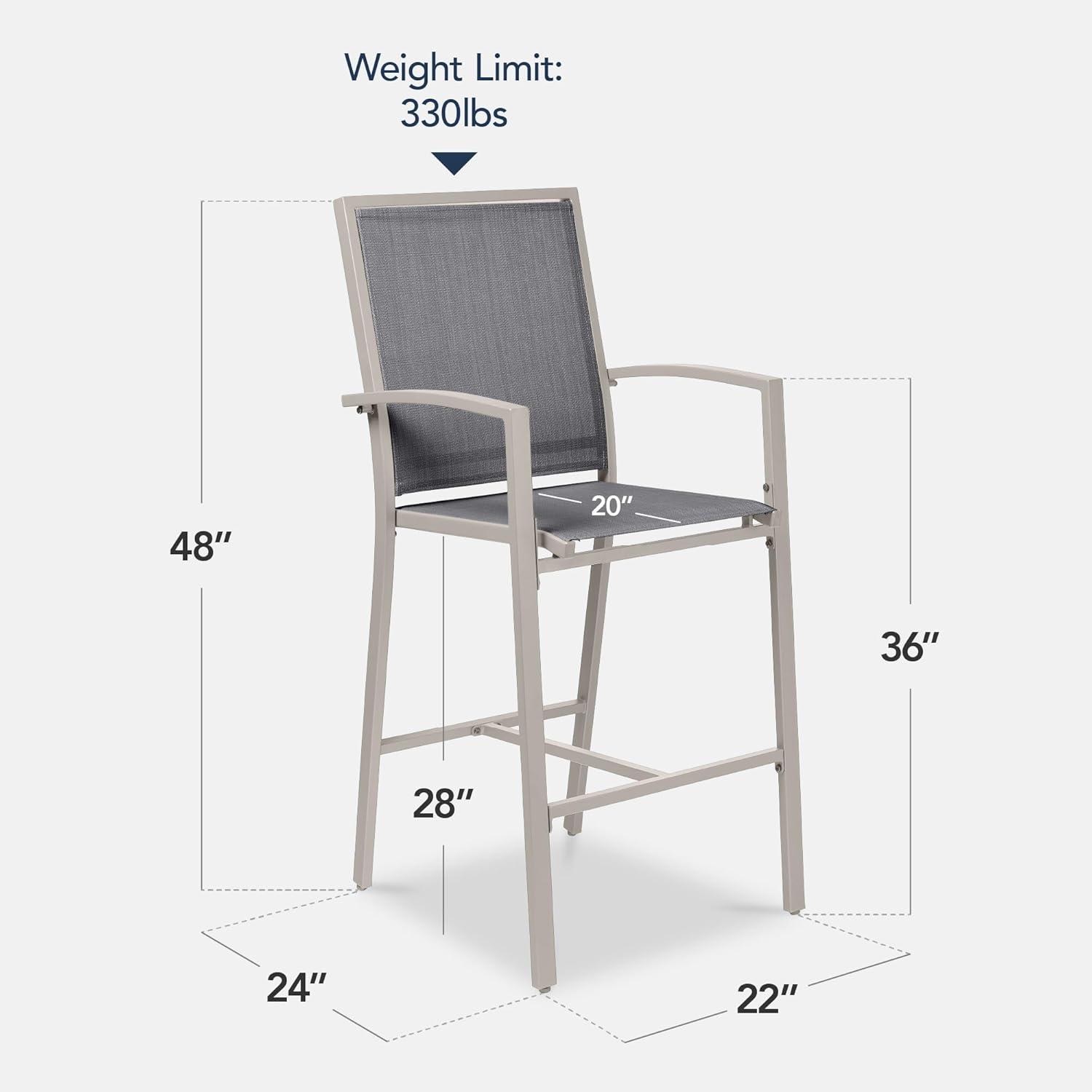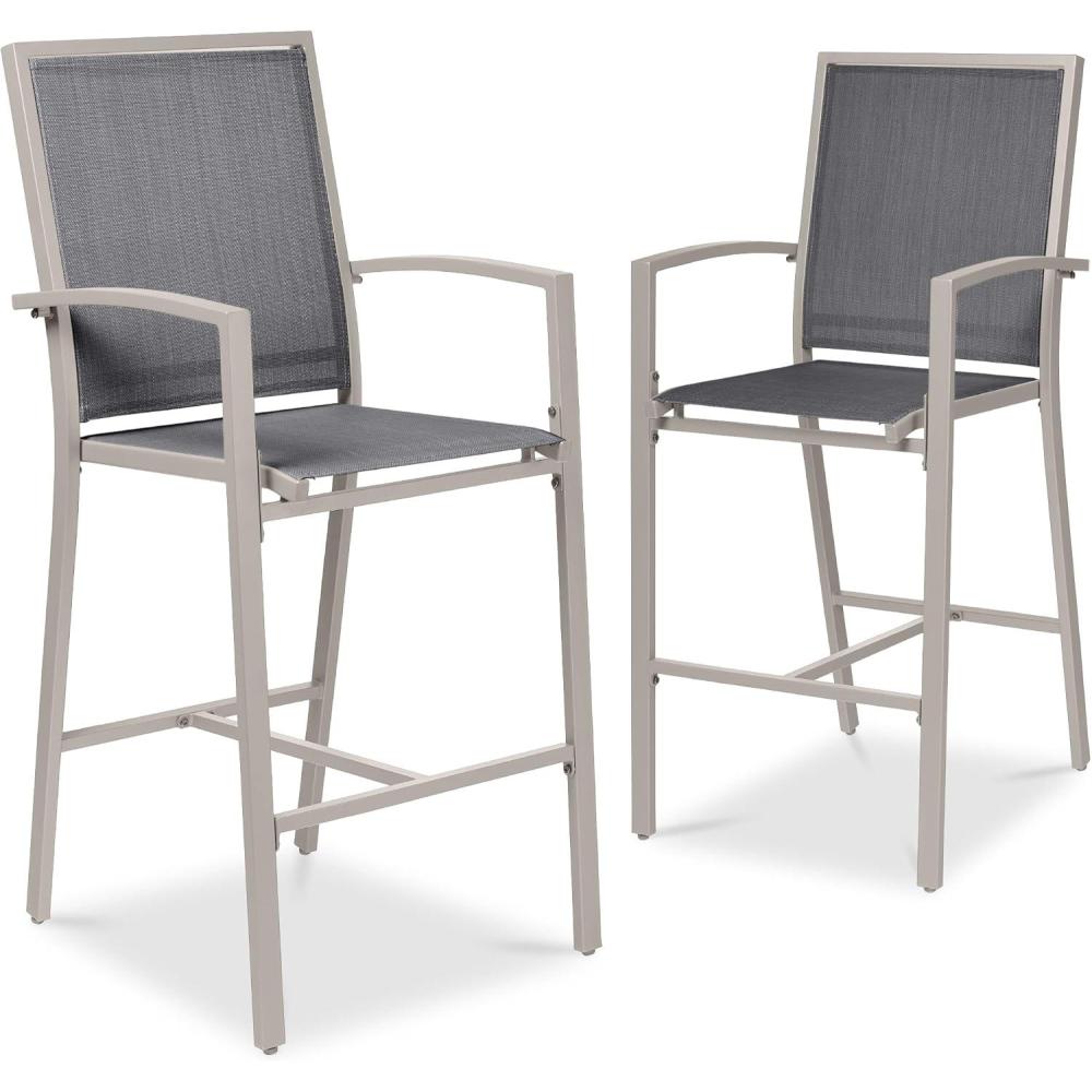 Best Choice Products Outdoor Bar Stools Set of 2, Bar Height, Patio Furniture, All Weather Mesh Design w/Armrest – Black/Navy(Gray/Gray)