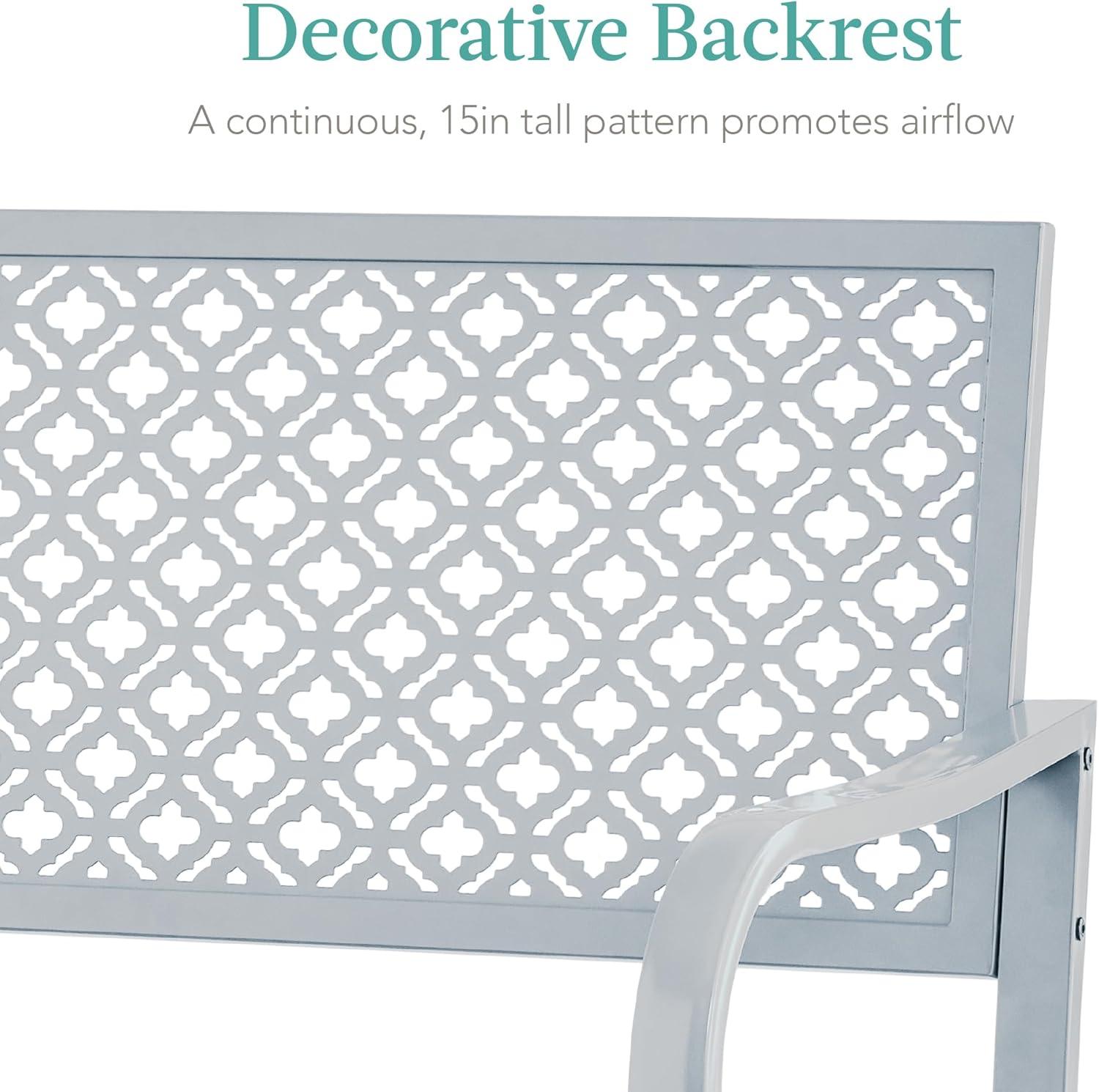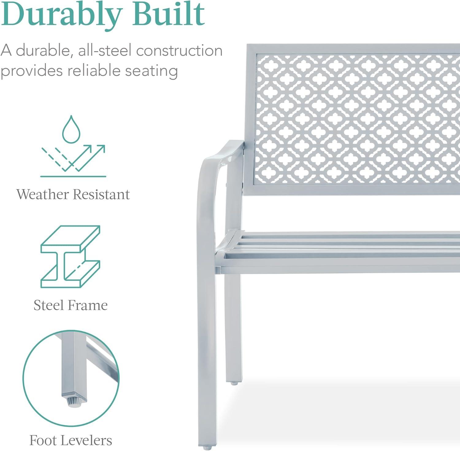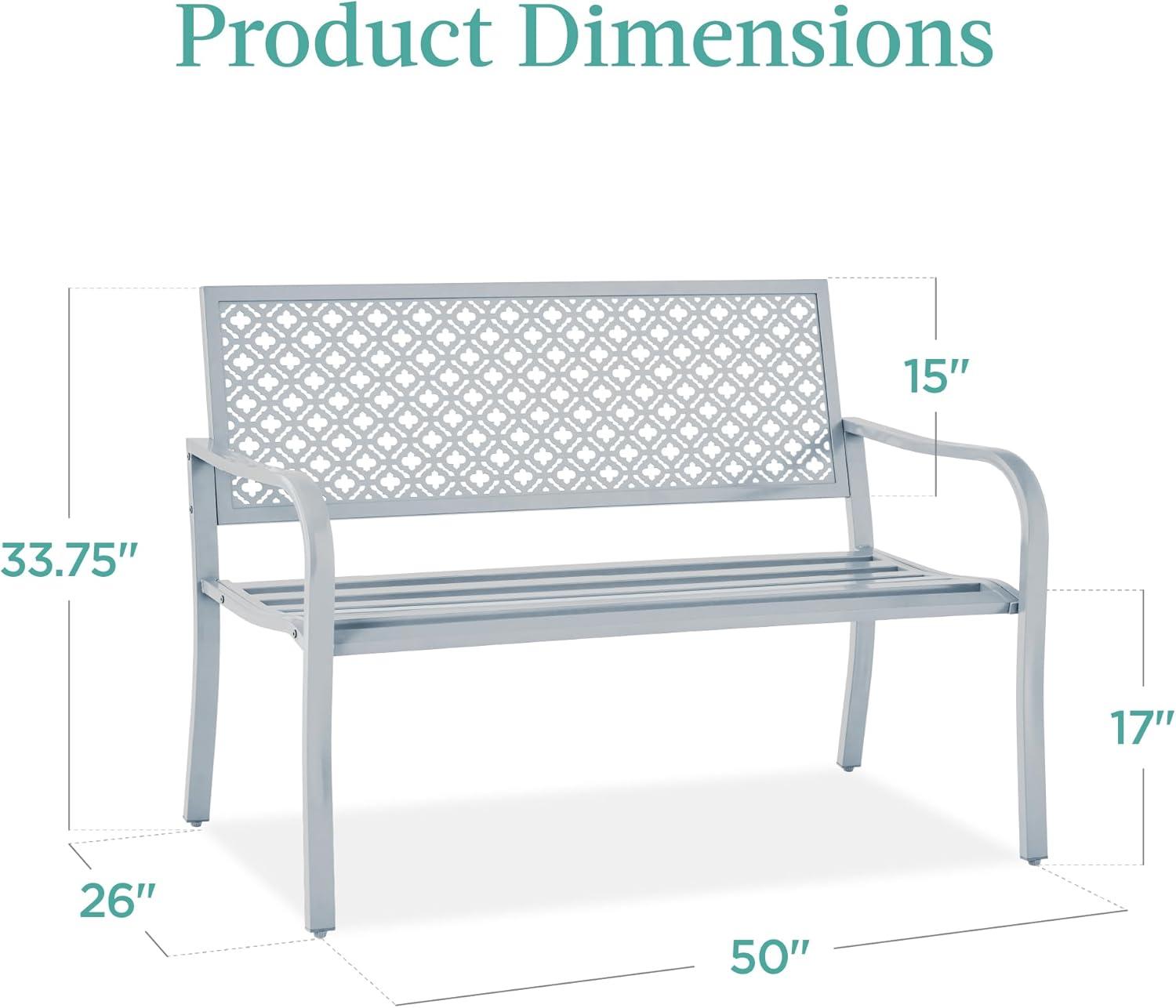 Best Choice Products Outdoor Bench 2-Person Metal Steel Benches Furniture for Garden, Patio, Porch, Entryway w/Geometric Backrest, 790lb Capacity – Black(Light Gray)