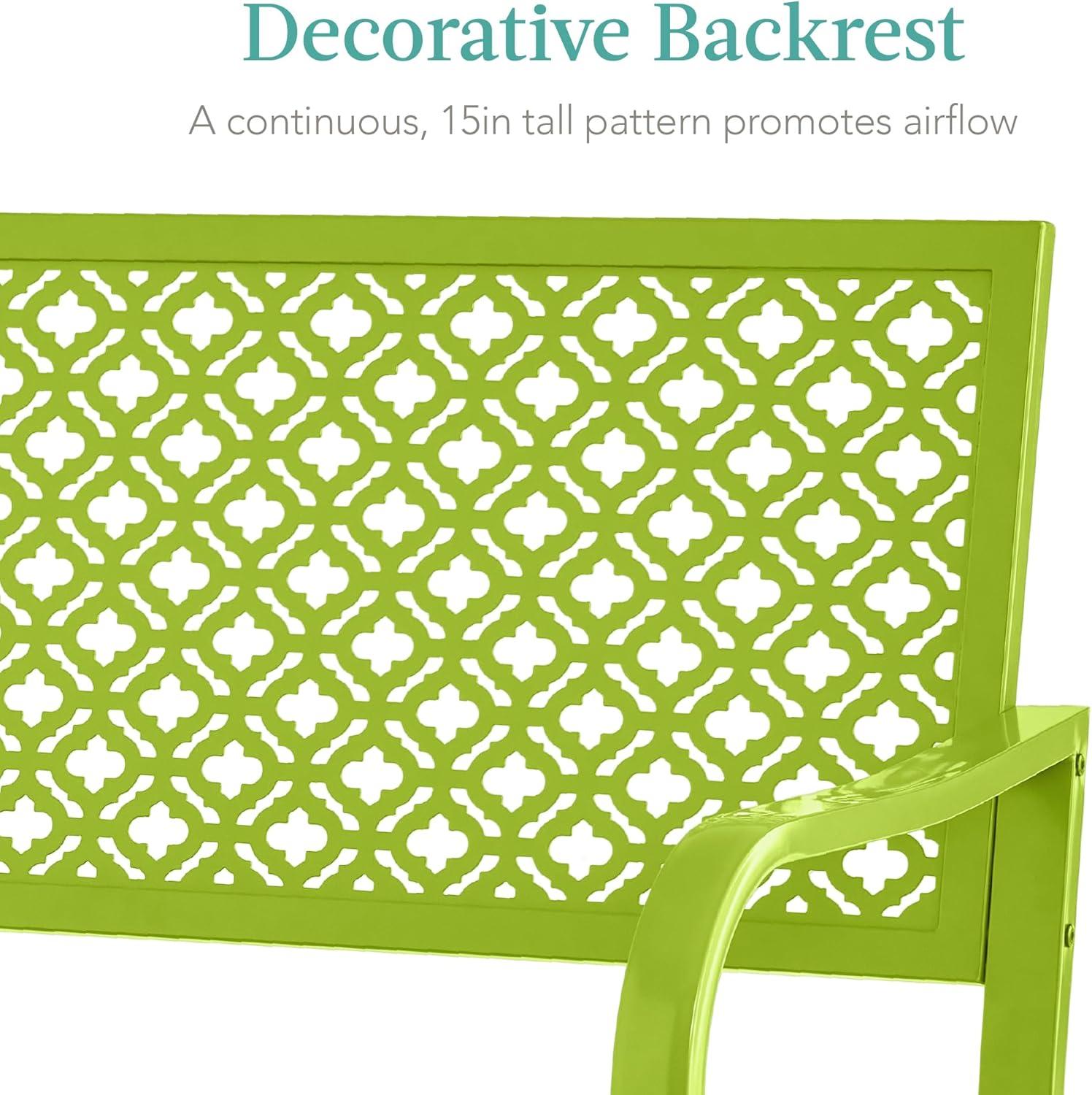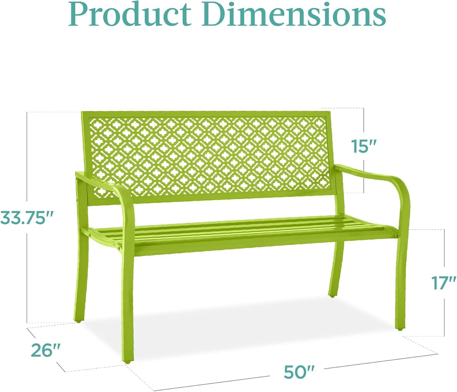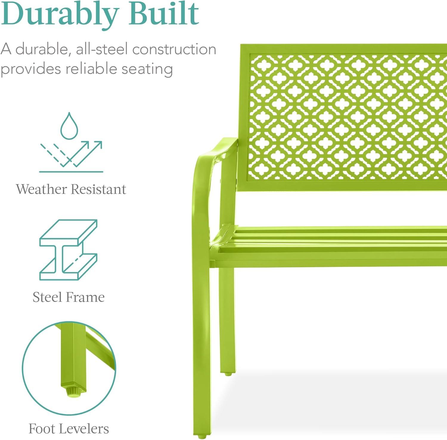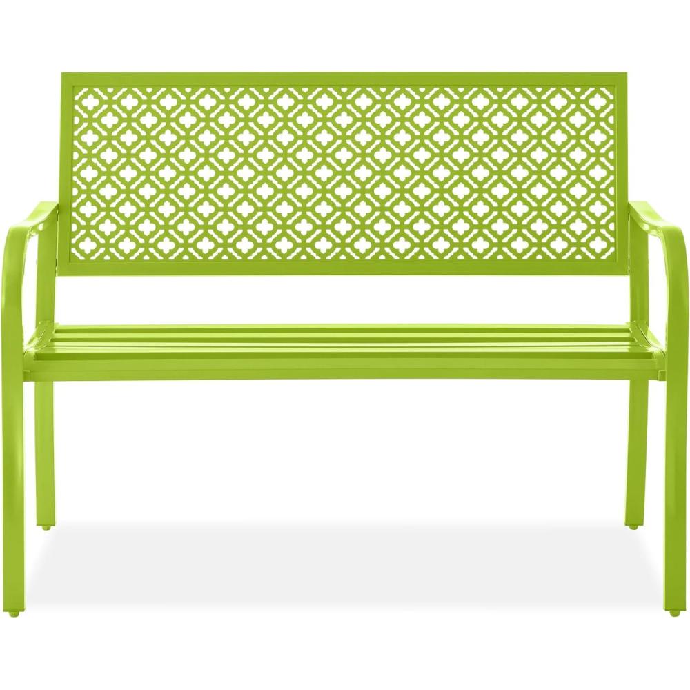 Best Choice Products Outdoor Bench 2-Person Metal Steel Benches Furniture for Garden, Patio, Porch, Entryway w/Geometric Backrest, 790lb Capacity – Black(Lime Green)