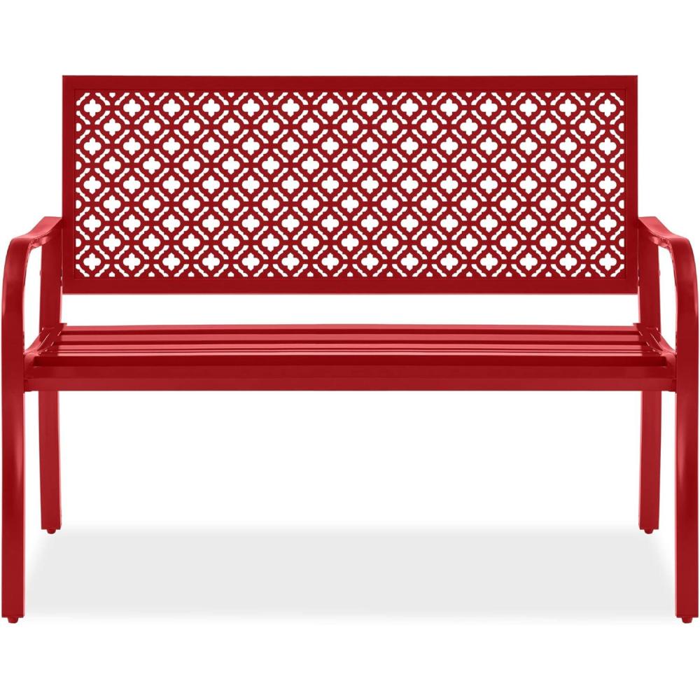 imageBest Choice Products Outdoor Bench 2Person Metal Steel Benches Furniture for Garden Patio Porch Entryway wGeometric Backrest 790lb Capacity  BlackRose Red