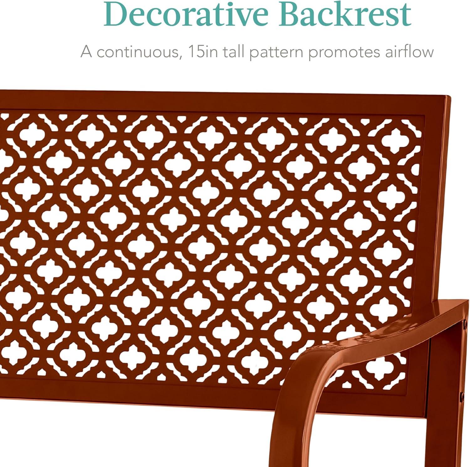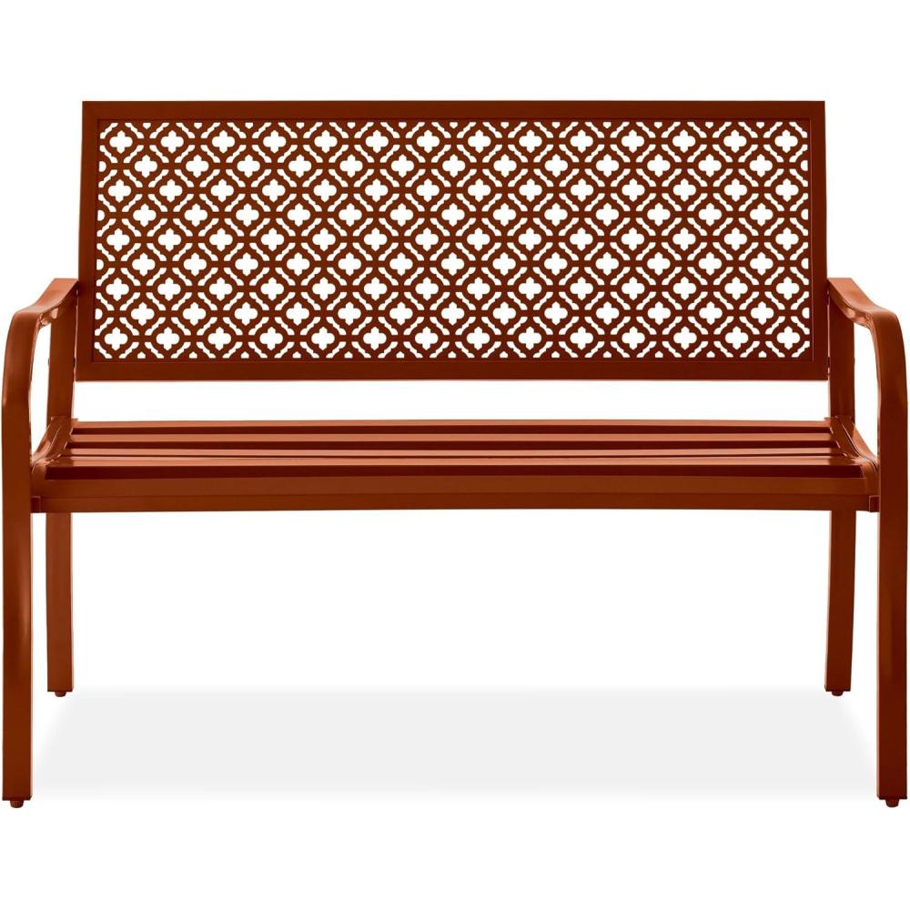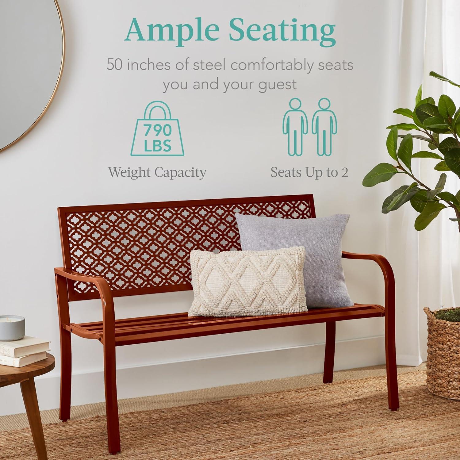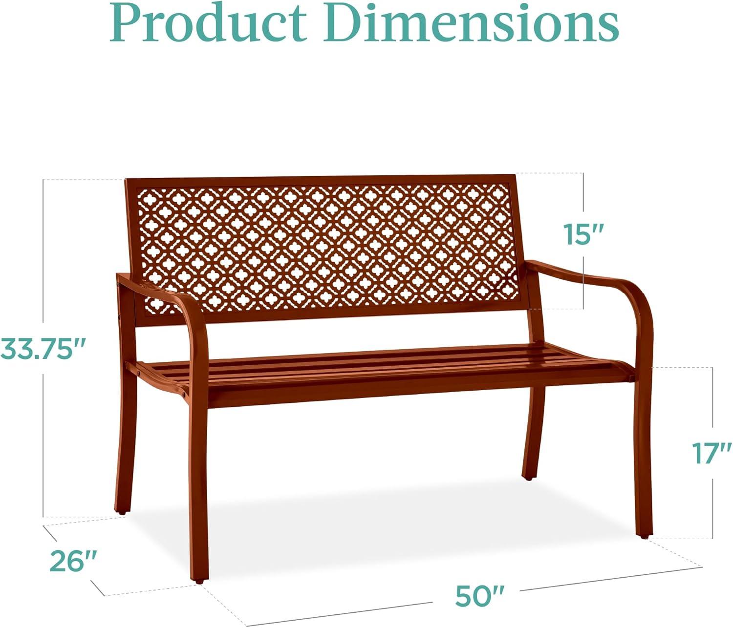Best Choice Products Outdoor Bench 2-Person Metal Steel Benches Furniture for Garden, Patio, Porch, Entryway w/Geometric Backrest, 790lb Capacity – Black(Rust)