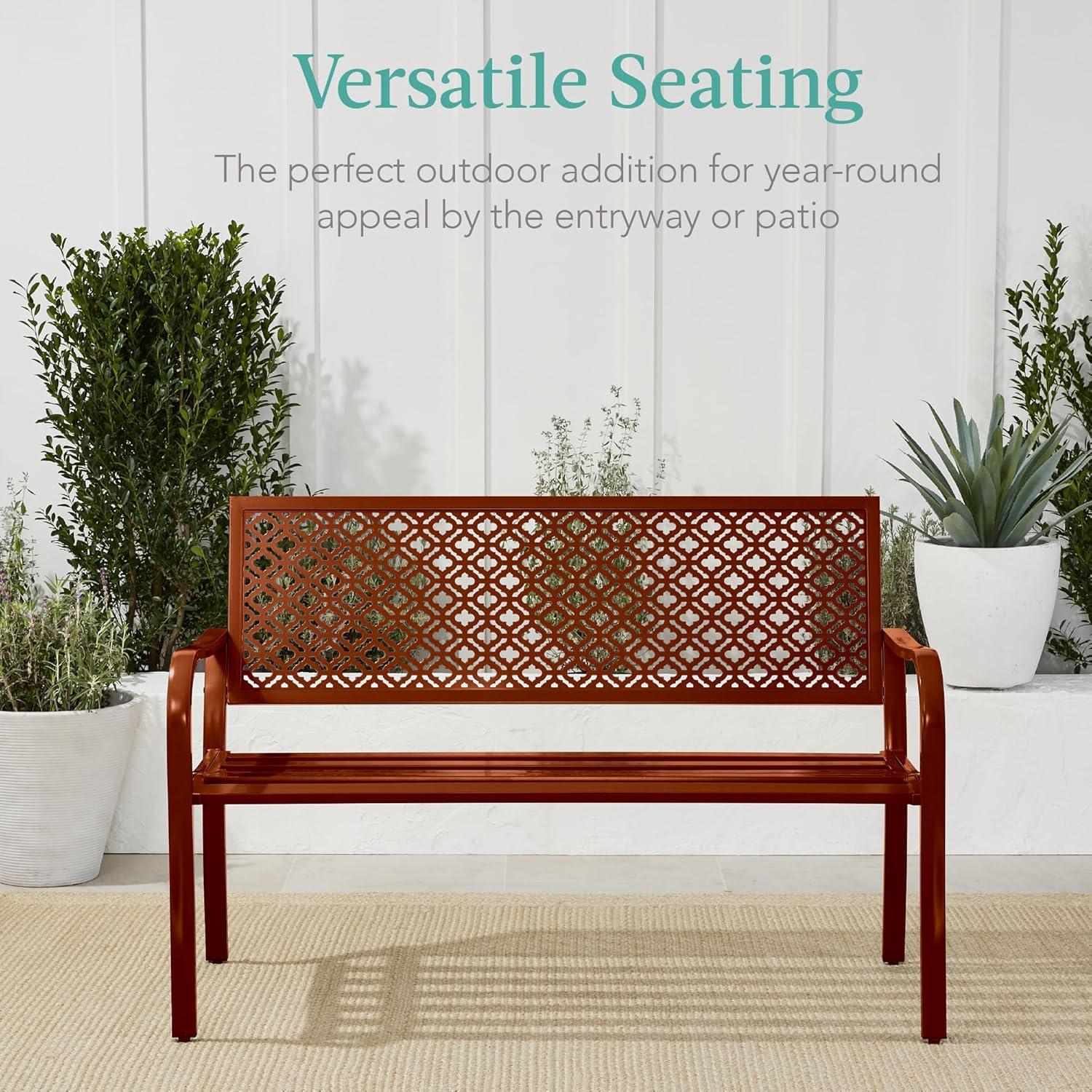 Best Choice Products Outdoor Bench 2-Person Metal Steel Benches Furniture for Garden, Patio, Porch, Entryway w/Geometric Backrest, 790lb Capacity – Black(Rose Red)