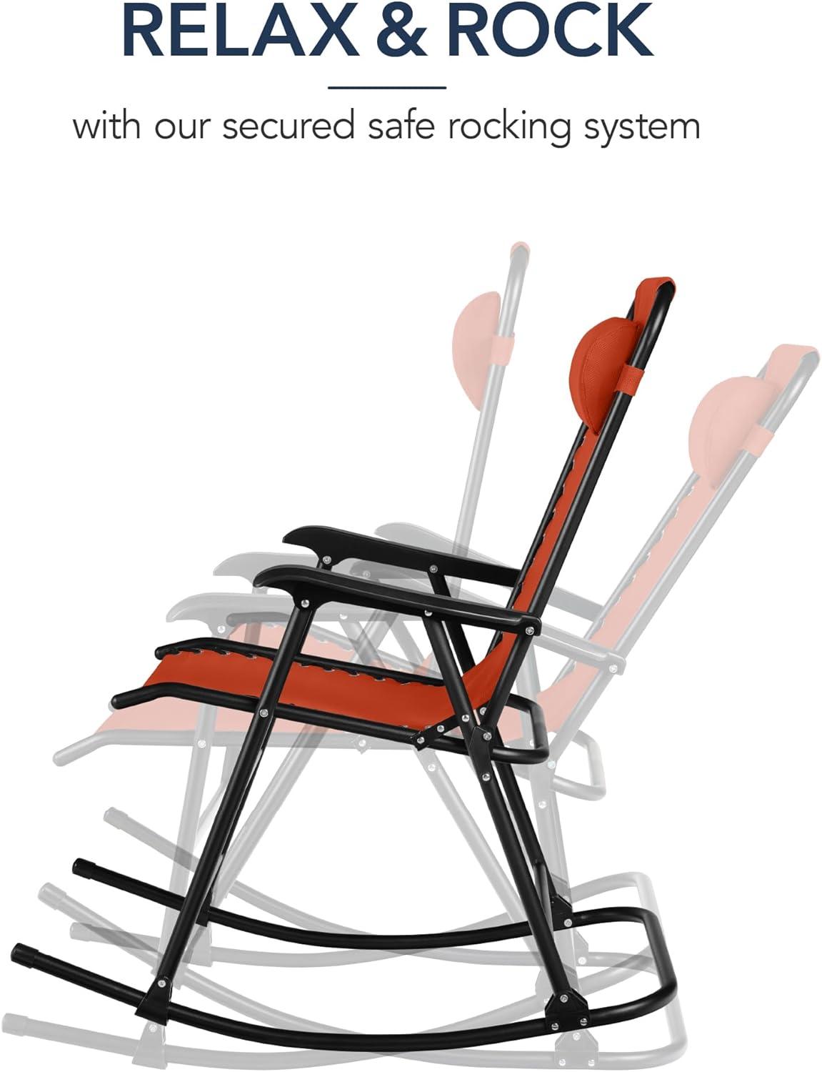 Best Choice Products Outdoor Folding Rocking Chair, Zero Gravity Lounge Chair, Patio Rocker w/Headrest Pillow – Peacock Blue(Burnt Orange)