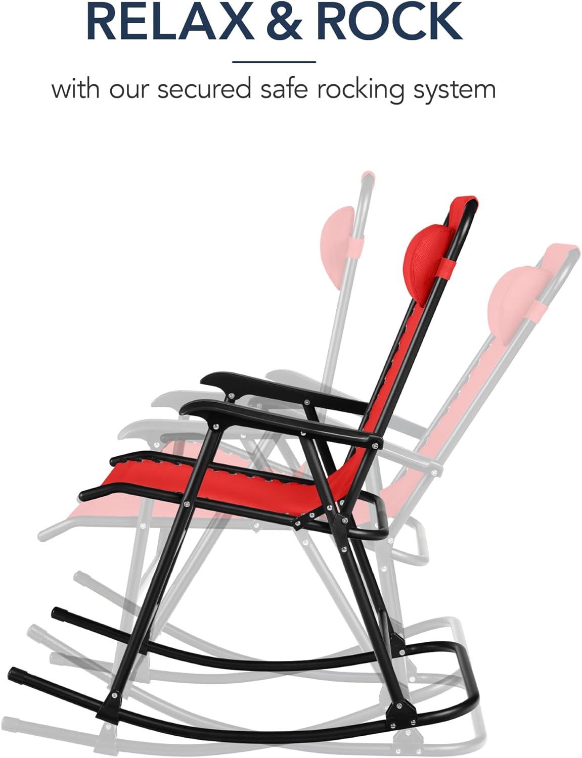 Best Choice Products Outdoor Folding Rocking Chair, Zero Gravity Lounge Chair, Patio Rocker w/Headrest Pillow – Peacock Blue(Crimson Red)