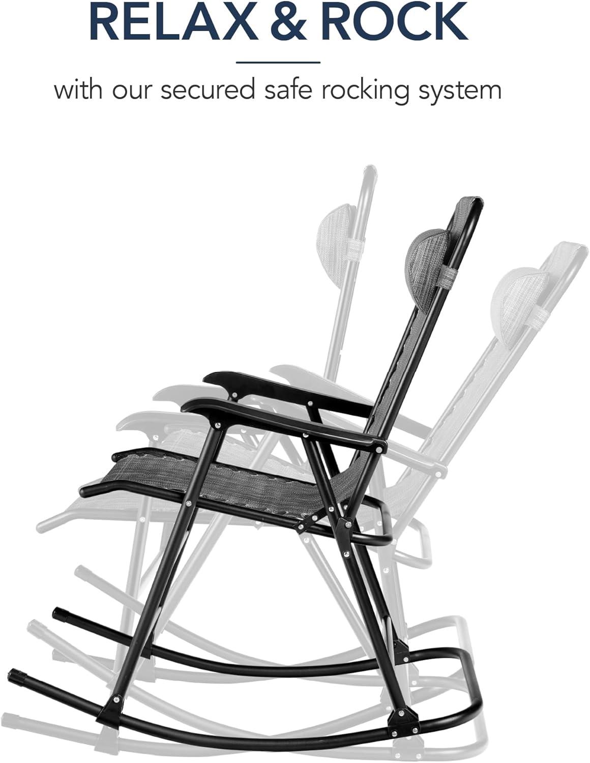 Best Choice Products Outdoor Folding Rocking Chair, Zero Gravity Lounge Chair, Patio Rocker w/Headrest Pillow – Peacock Blue(Gray)