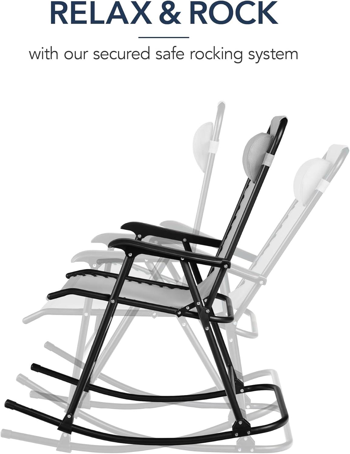 Best Choice Products Outdoor Folding Rocking Chair, Zero Gravity Lounge Chair, Patio Rocker w/Headrest Pillow – Peacock Blue(Ice Gray)
