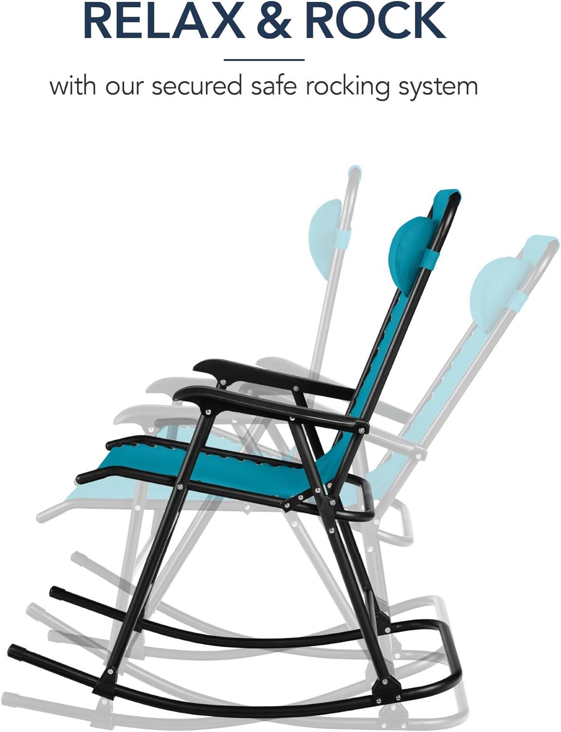 Best Choice Products Outdoor Folding Rocking Chair, Zero Gravity Lounge Chair, Patio Rocker w/Headrest Pillow - Peacock Blue(Peacock Blue)