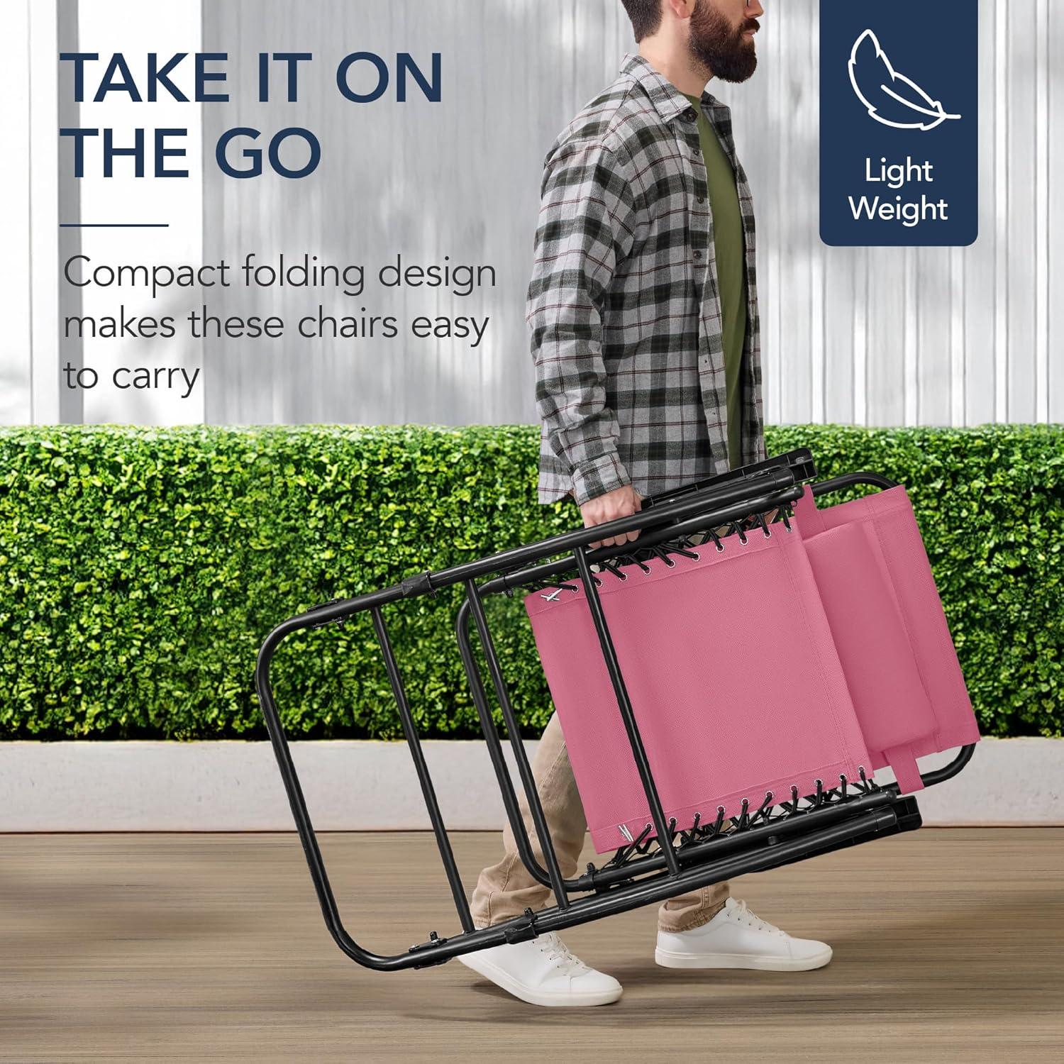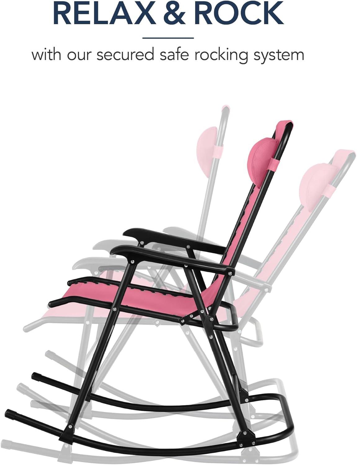 Best Choice Products Outdoor Folding Rocking Chair, Zero Gravity Lounge Chair, Patio Rocker w/Headrest Pillow – Peacock Blue(Pink)