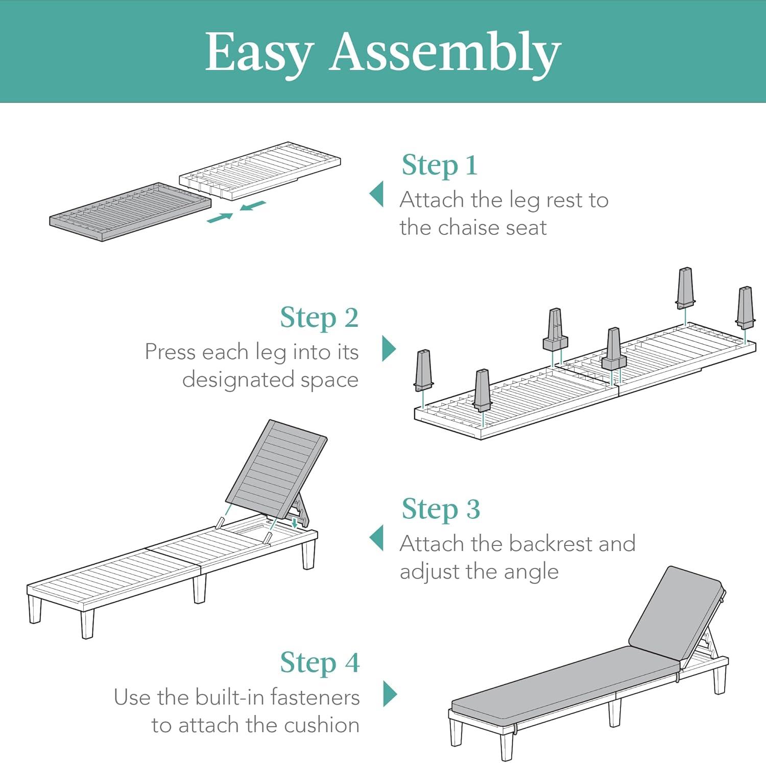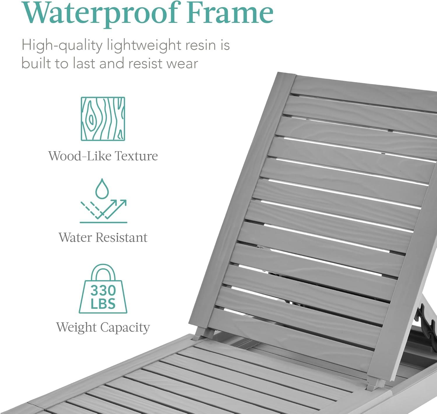 Best Choice Products Outdoor Lounge Chair, Resin Patio Chaise Lounger for Poolside, Backyard, Porch w/Seat Cushion, Adjustable Backrest, 5 Positions, 330lb Capacity – Gray/Navy(Gray/Teal)