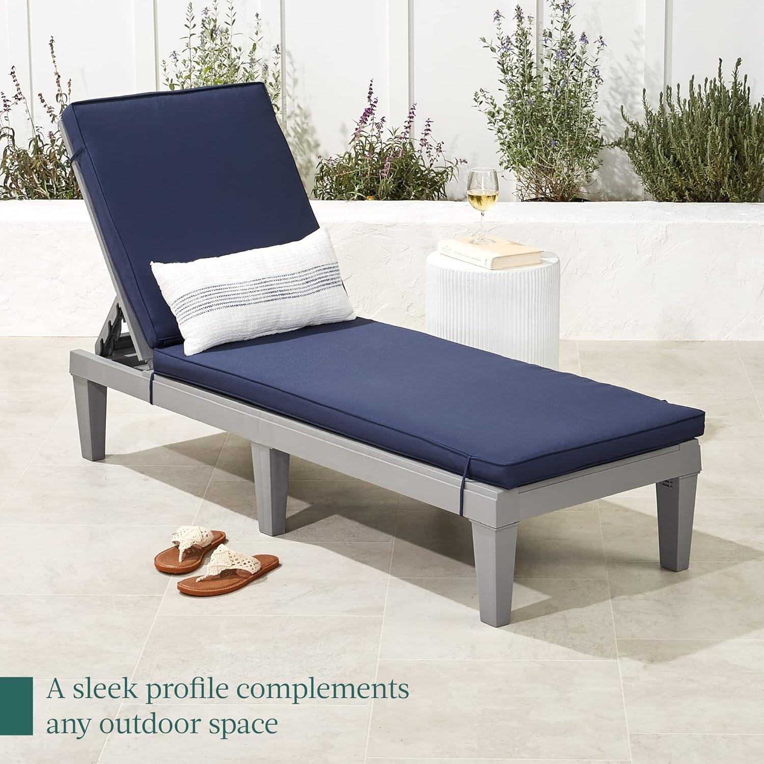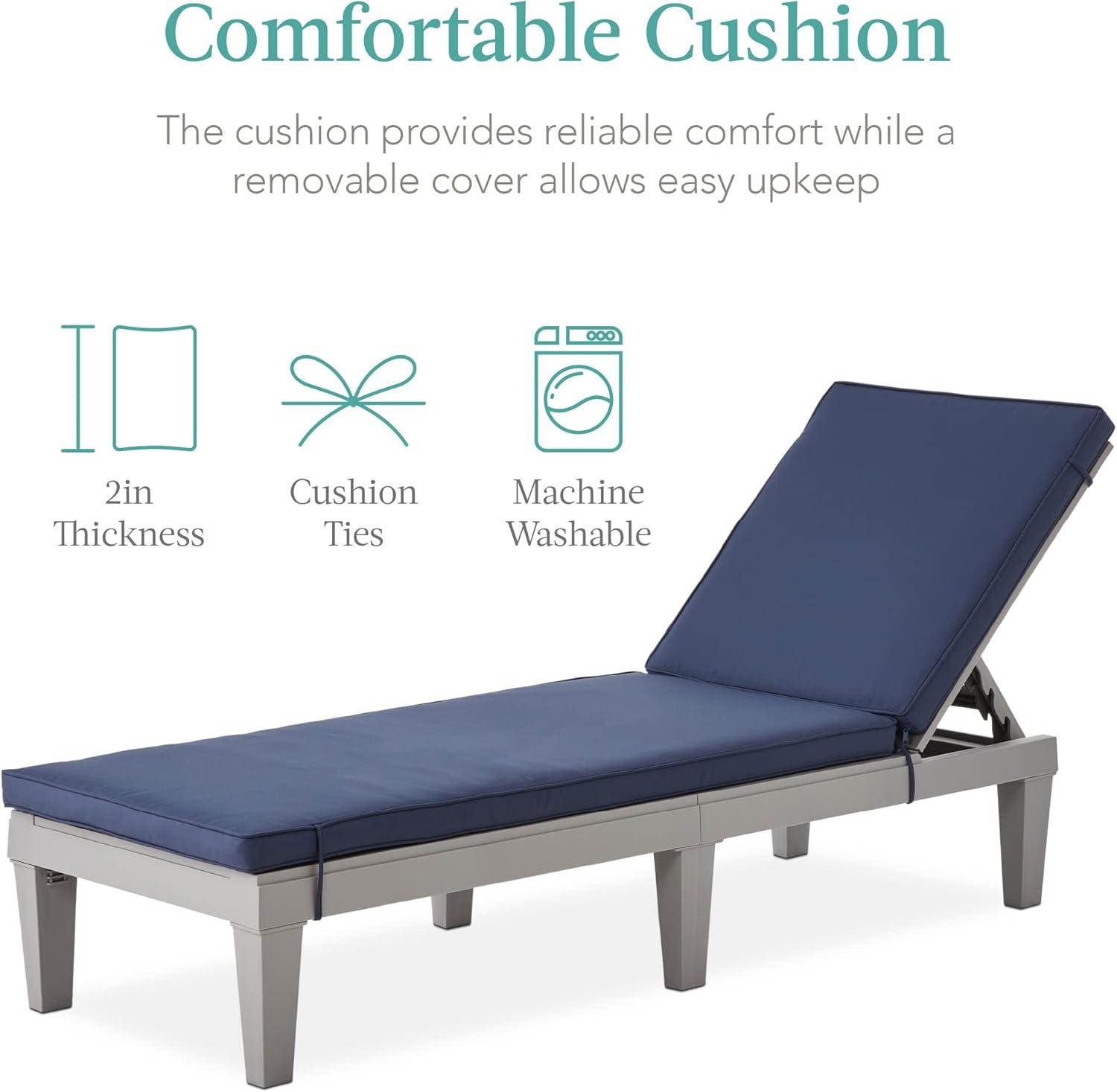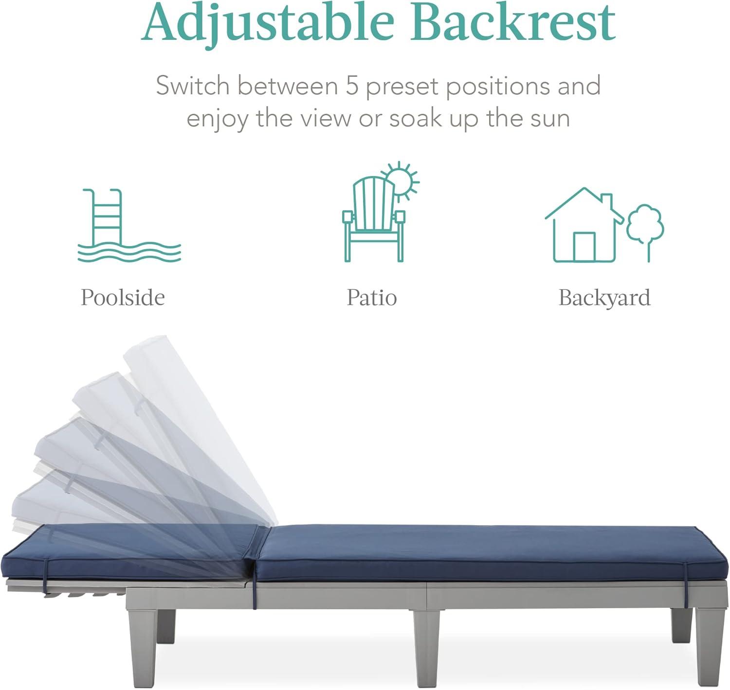 Best Choice Products Outdoor Lounge Chair, Resin Patio Chaise Lounger for Poolside, Backyard, Porch w/Seat Cushion, Adjustable Backrest, 5 Positions, 330lb Capacity - Gray/Navy(Gray/Navy)