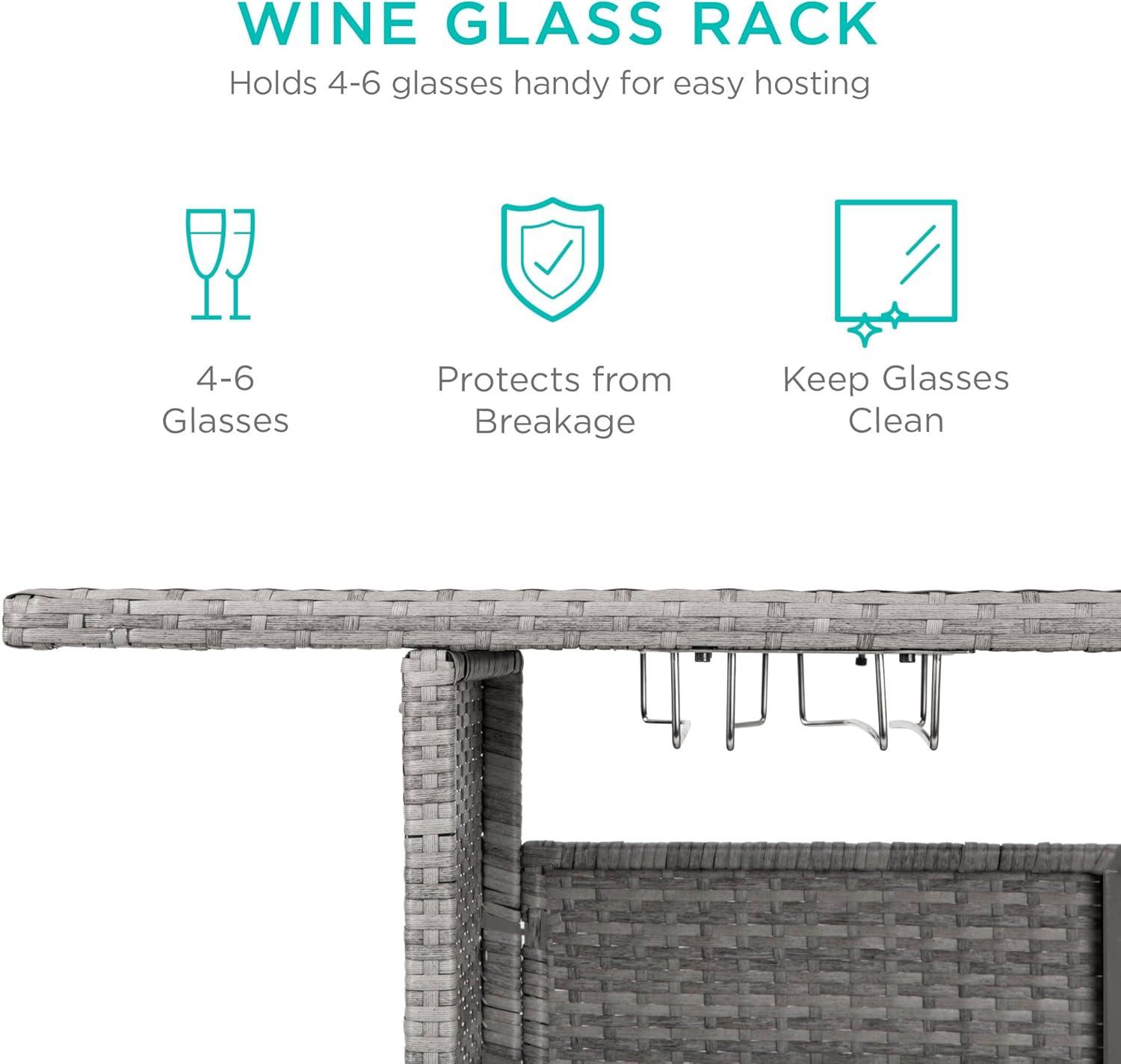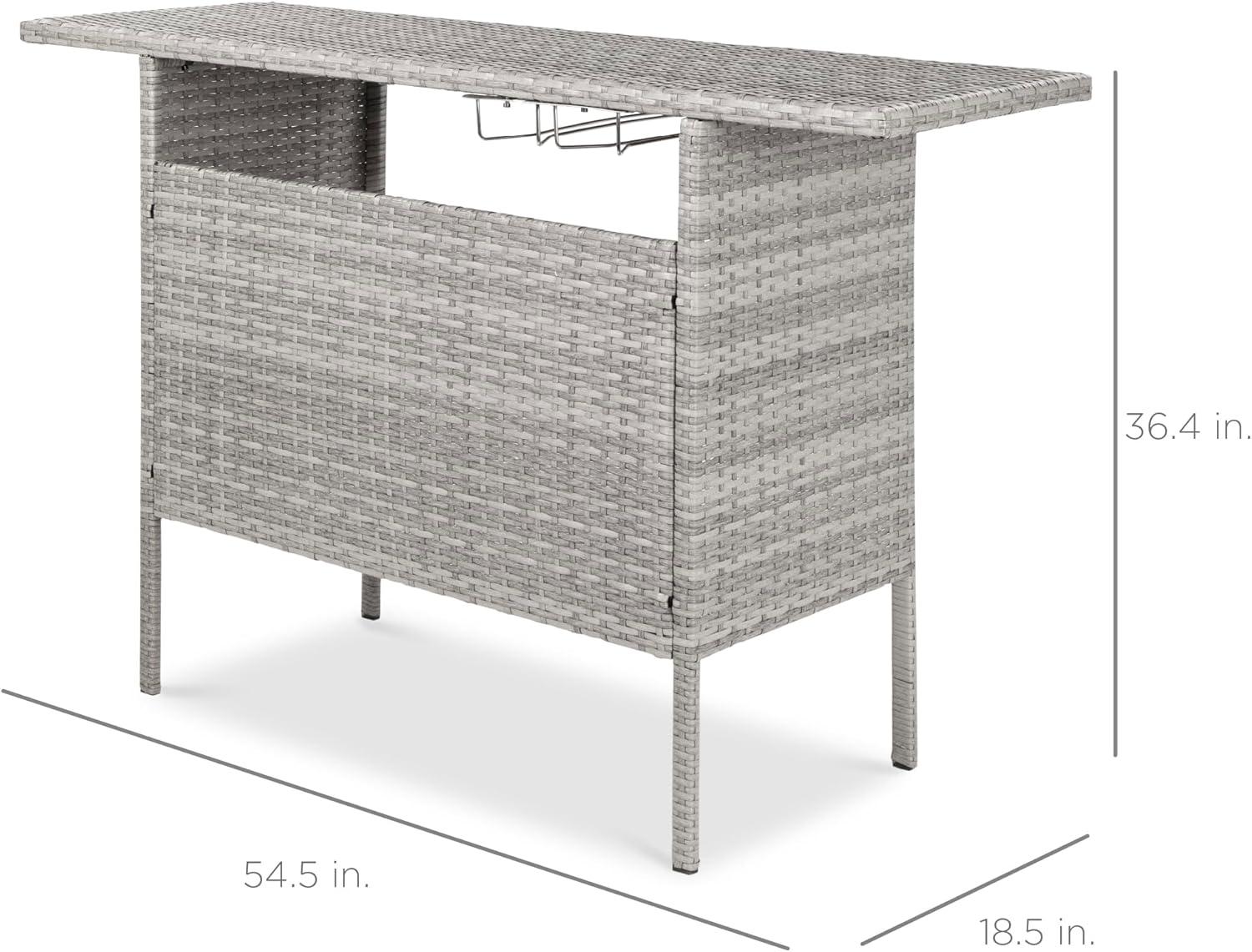 Best Choice Products Outdoor Patio Wicker Bar Counter Table Backyard Furniture w/ 2 Steel Shelves and 2 Sets of Rails - Gray(Grey)