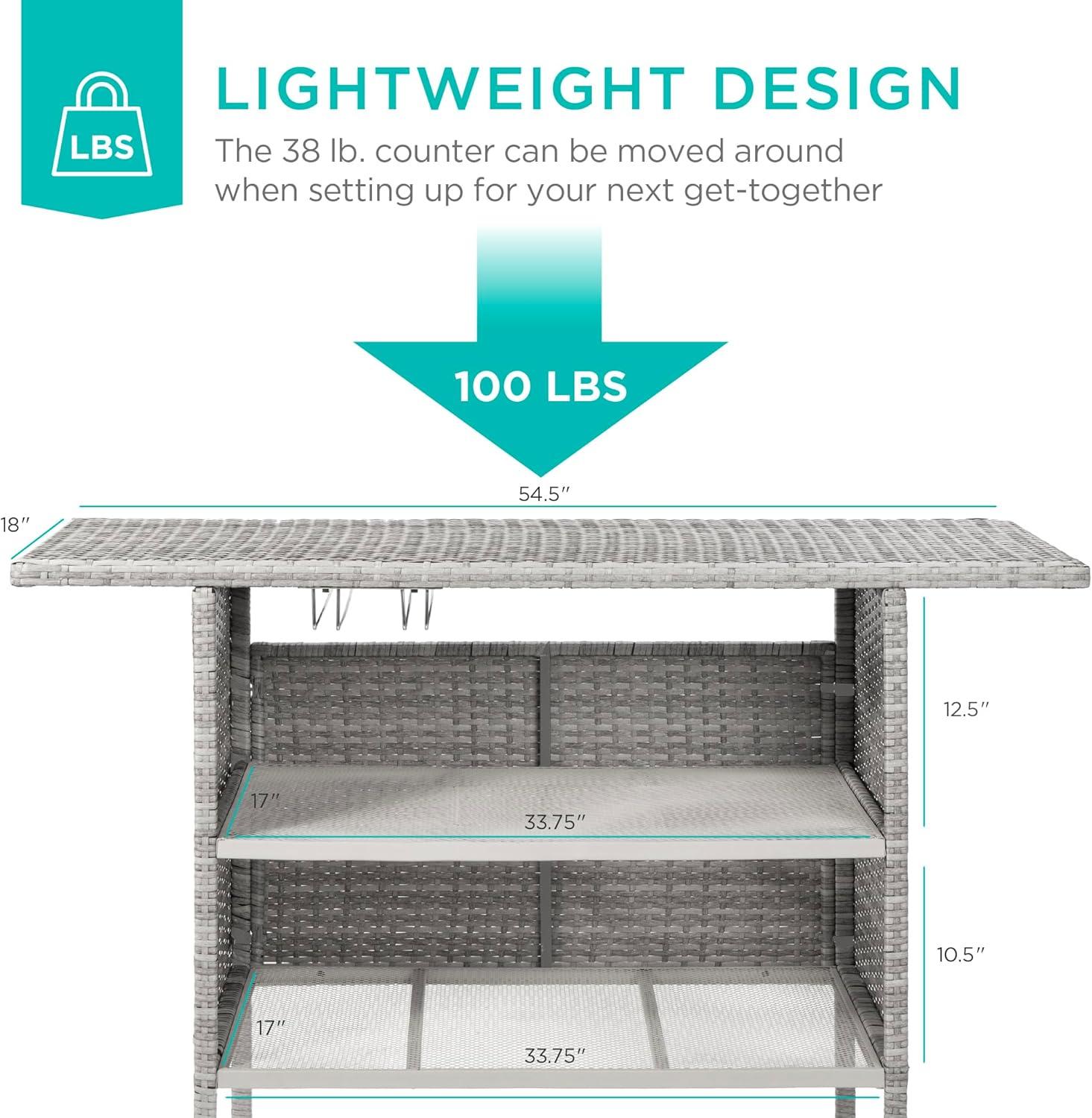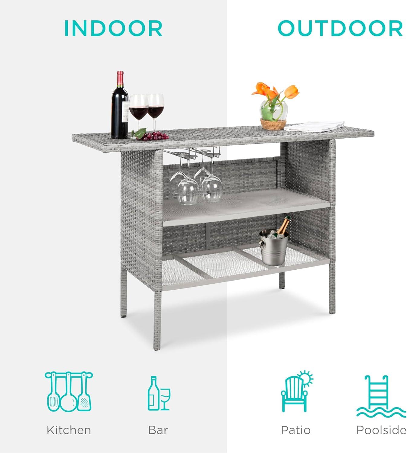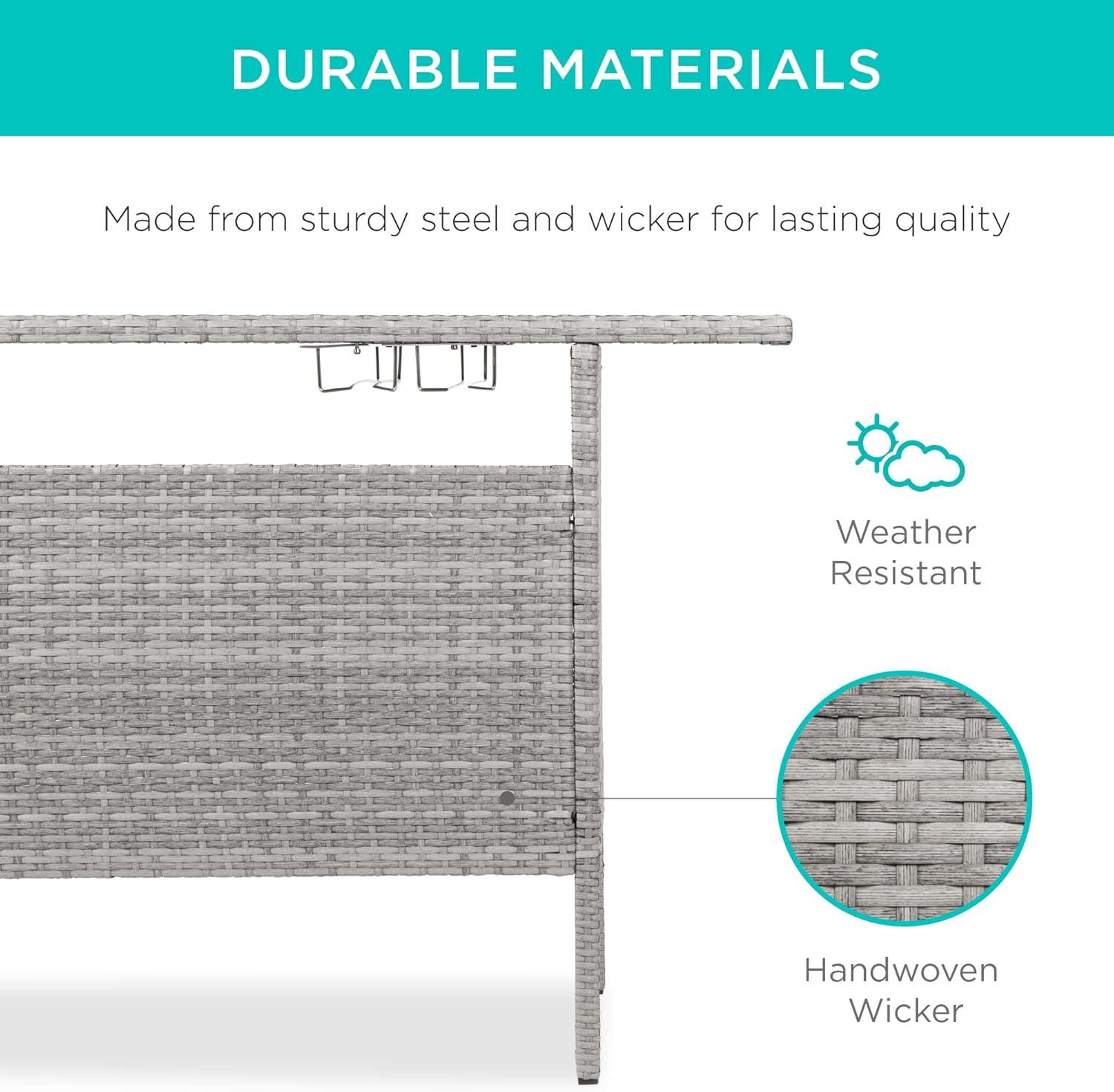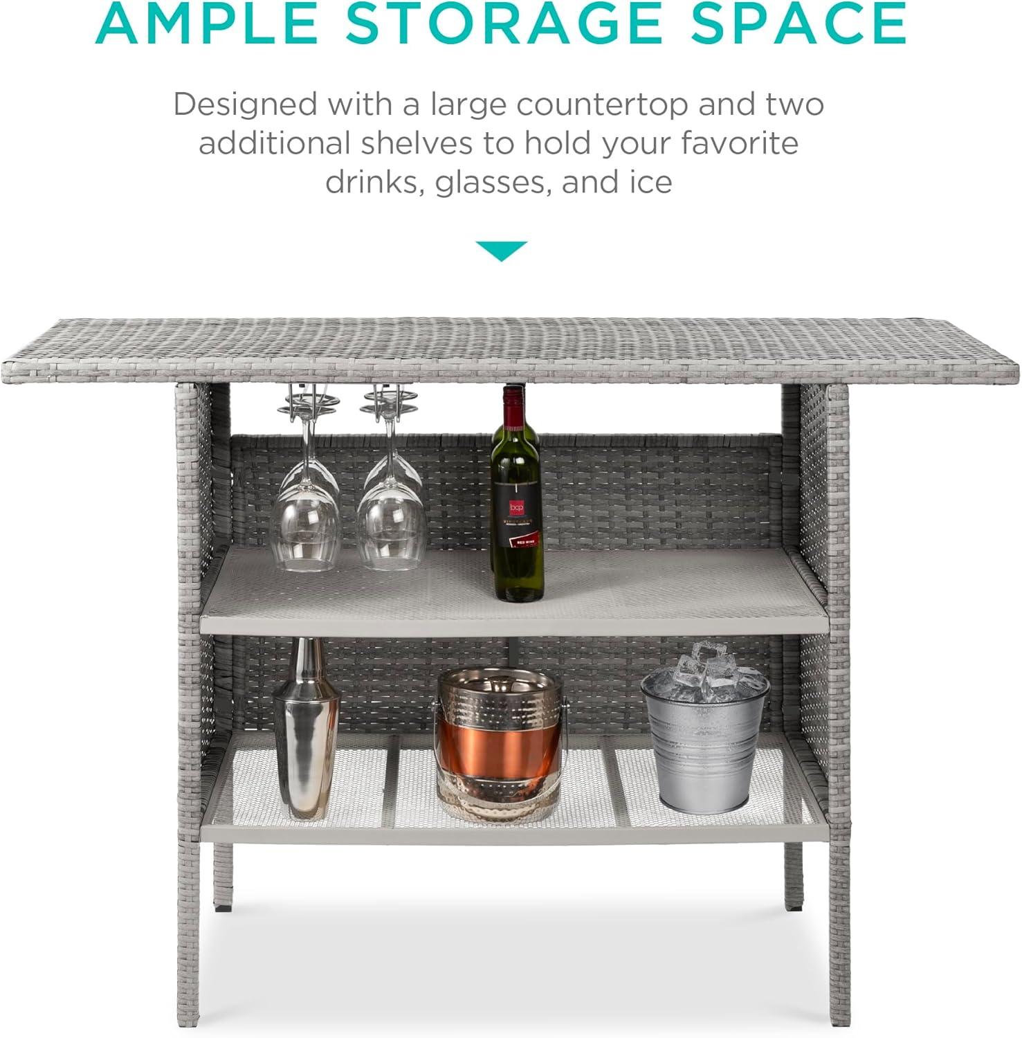 Best Choice Products Outdoor Patio Wicker Bar Counter Table Backyard Furniture w/ 2 Steel Shelves and 2 Sets of Rails – Gray(Grey)