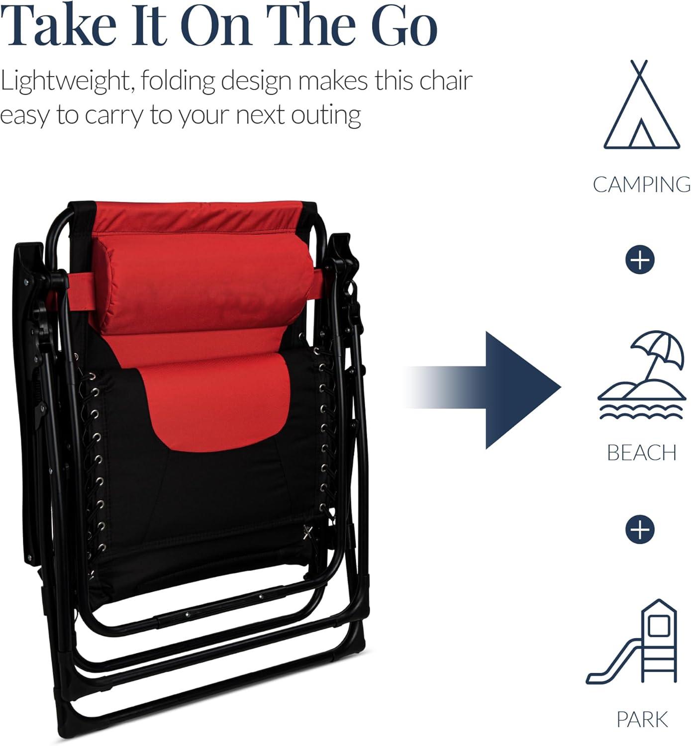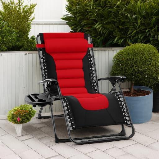 Best Choice Products Oversized Padded Zero Gravity Chair, Folding Outdoor Patio Recliner, XL Anti Gravity Lounger for Backyard w/Headrest, Cup Holder, Side Tray, Polyester Mesh – Forest Green(Red / Black)