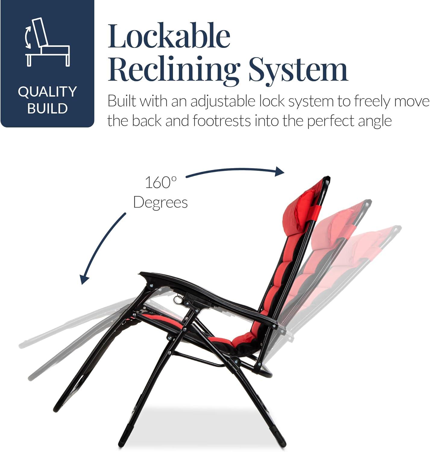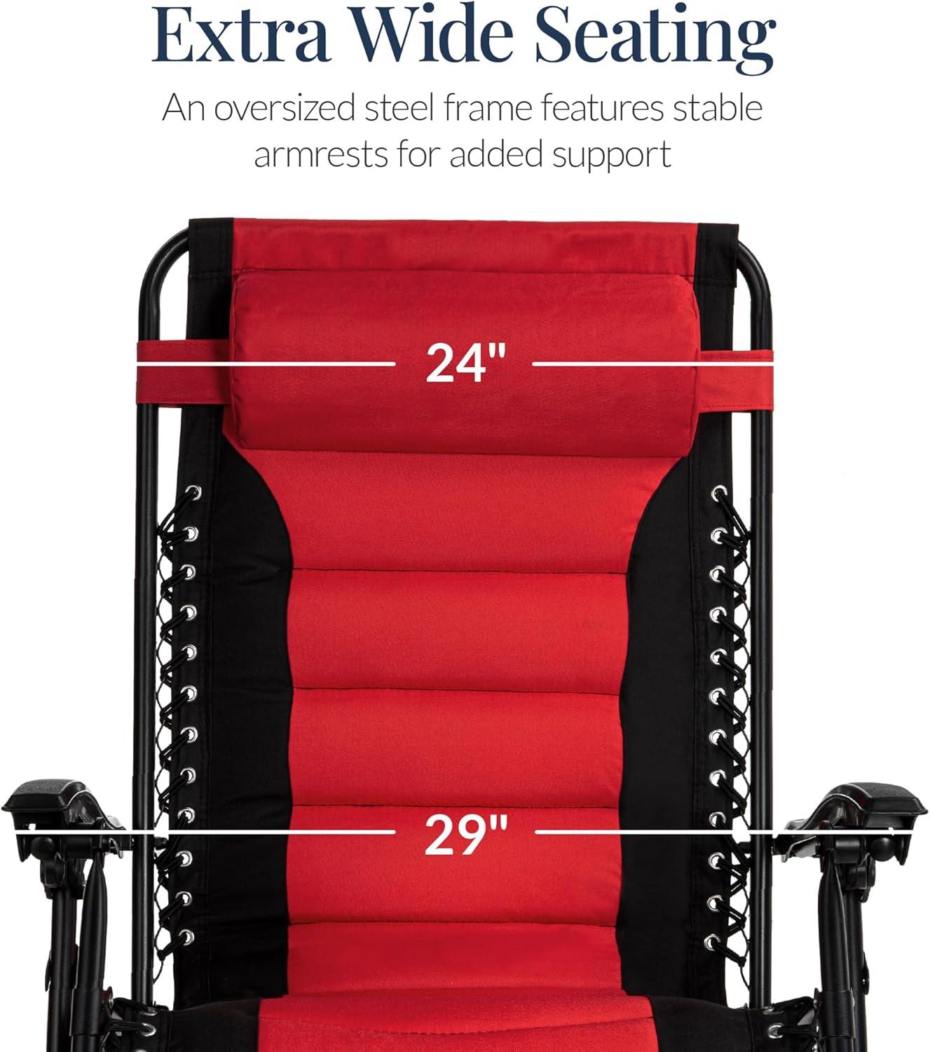 Best Choice Products Oversized Padded Zero Gravity Chair, Folding Outdoor Patio Recliner, XL Anti Gravity Lounger for Backyard w/Headrest, Cup Holder, Side Tray, Polyester Mesh - Forest Green(Red / Black)