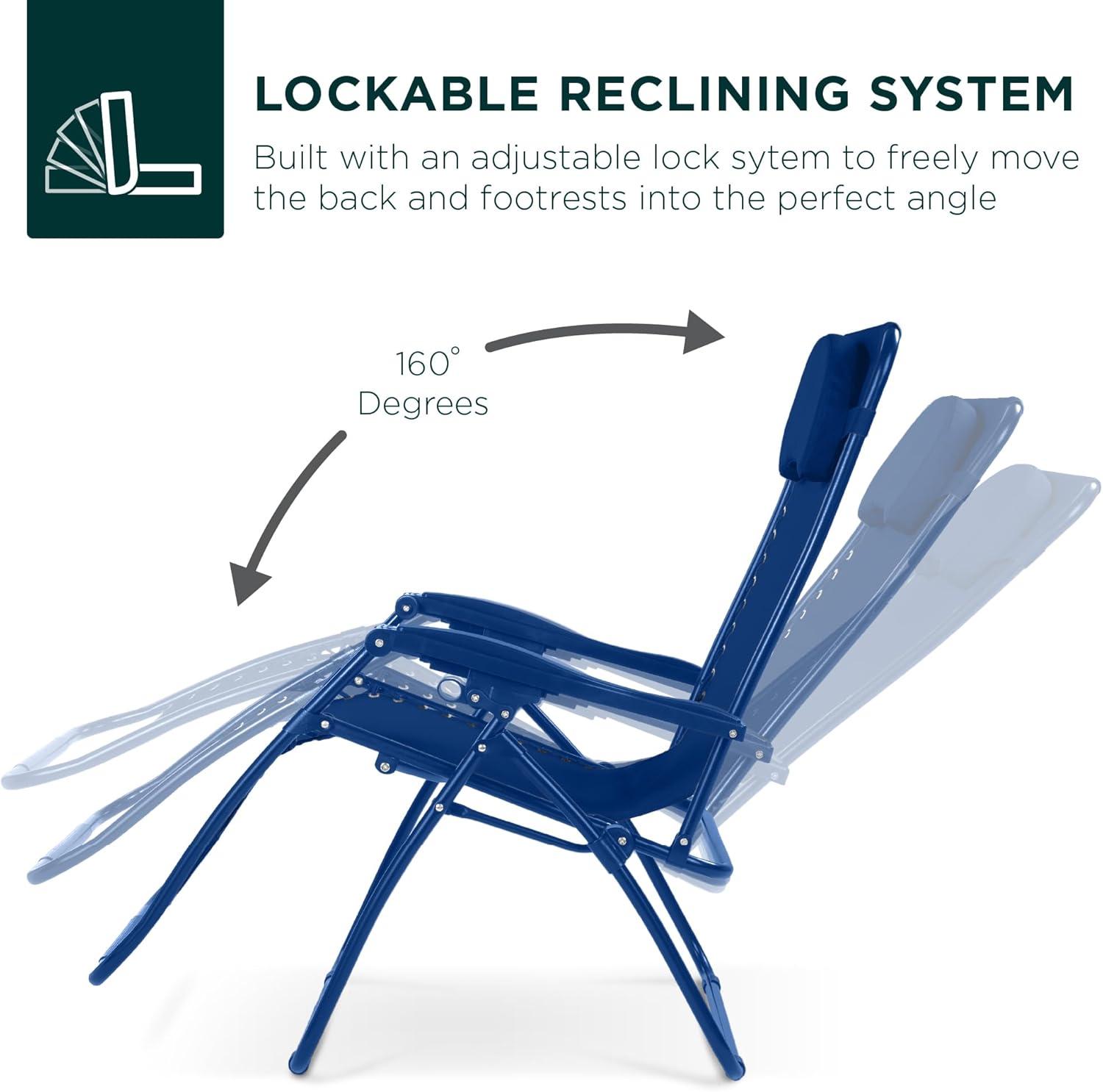 Best Choice Products Oversized Zero Gravity Chair, Folding Outdoor Patio Lounge Recliner w/Cup Holder Accessory Tray, Pillow - Amethyst Purple(Marine)