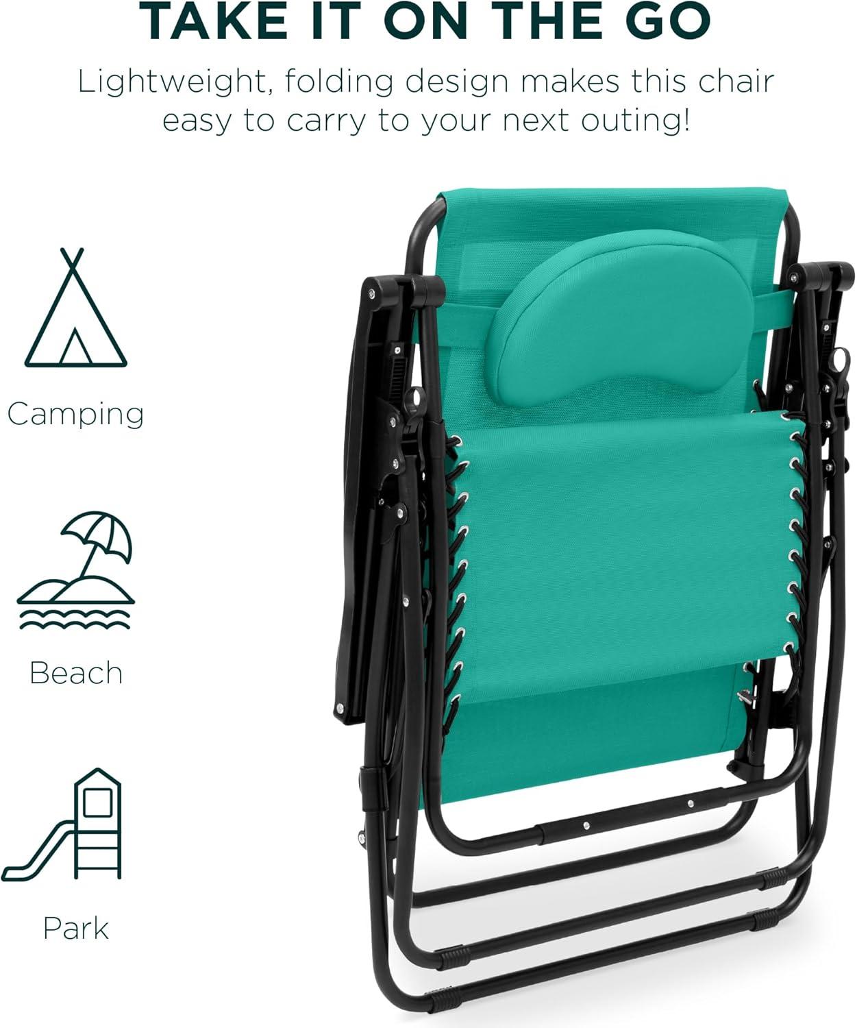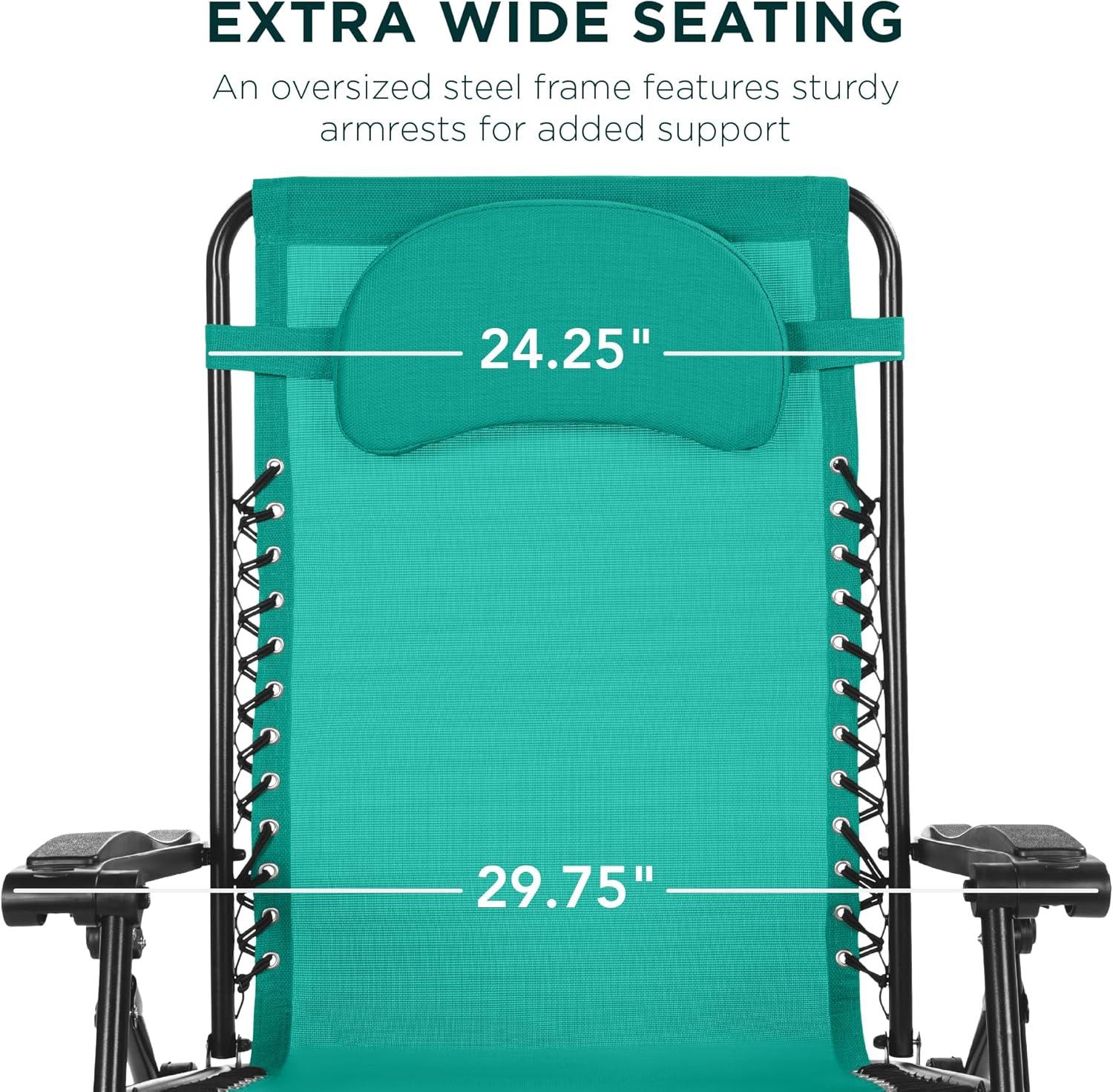 Best Choice Products Oversized Zero Gravity Chair, Folding Outdoor Patio Lounge Recliner w/Cup Holder Accessory Tray, Pillow - Amethyst Purple(Mint)