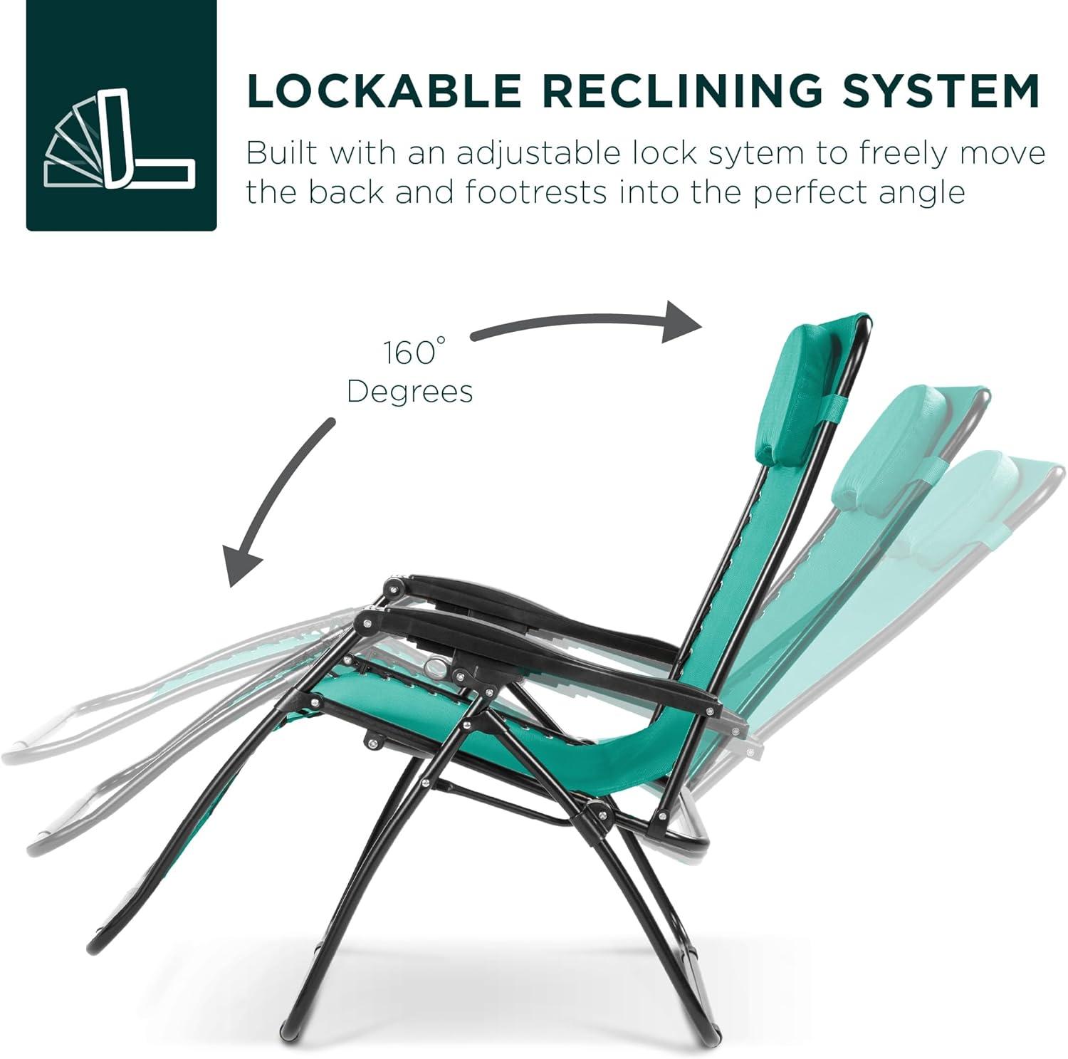 Best Choice Products Oversized Zero Gravity Chair, Folding Outdoor Patio Lounge Recliner w/Cup Holder Accessory Tray, Pillow – Amethyst Purple(Marine)