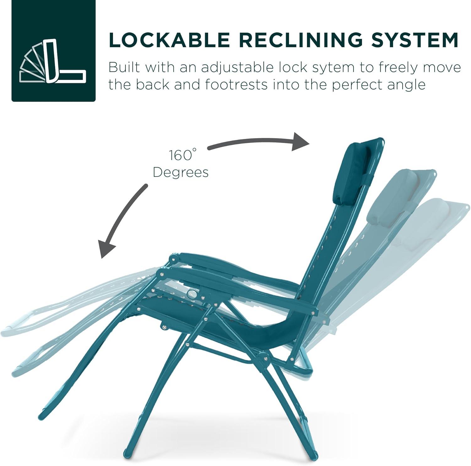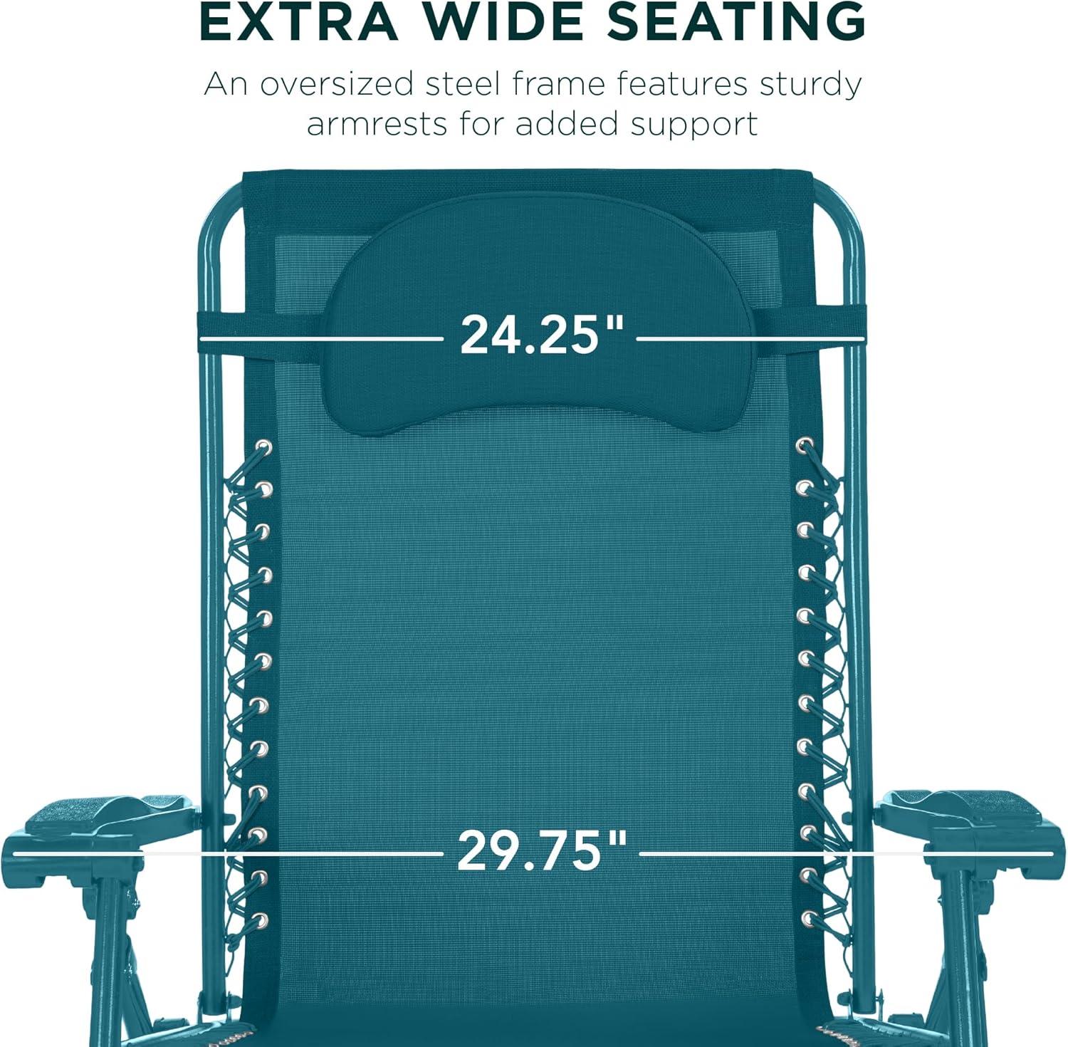 Best Choice Products Oversized Zero Gravity Chair, Folding Outdoor Patio Lounge Recliner w/Cup Holder Accessory Tray, Pillow – Amethyst Purple(Peacock Blue)